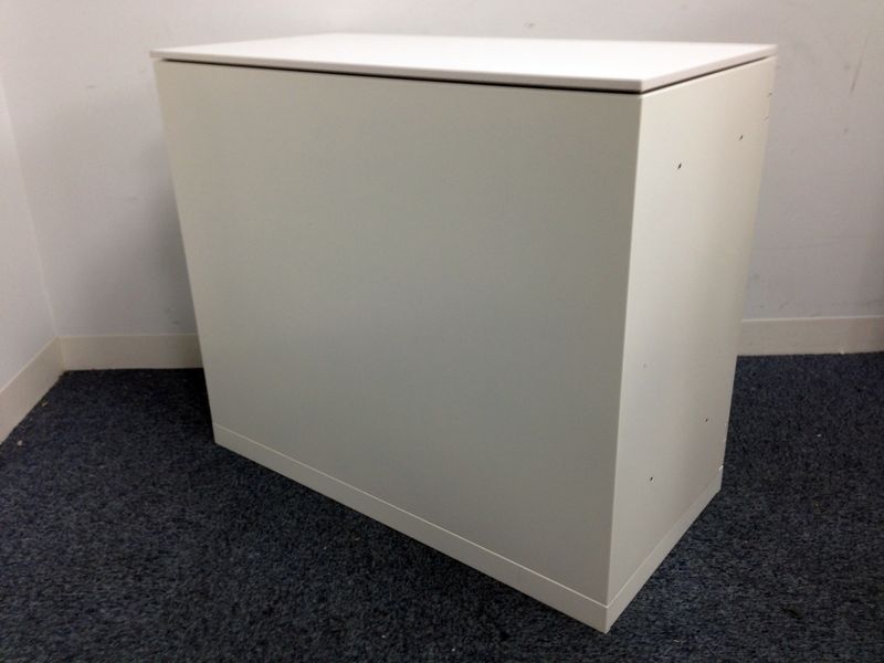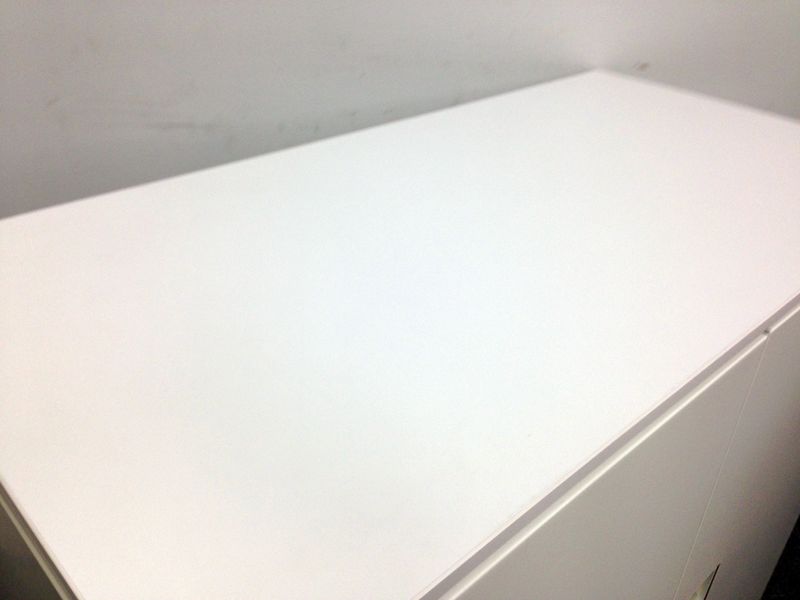 【オフィスの書類をスッキリ整理!取っ手がどの方向からでも開くマルチハンドル!】■オカムラ(okamura)製 レクトラインシリーズ 両開き書庫 ローキャビネット ■本体色:ホワイト ■シリンダー錠 ■ナチュラル天板付き