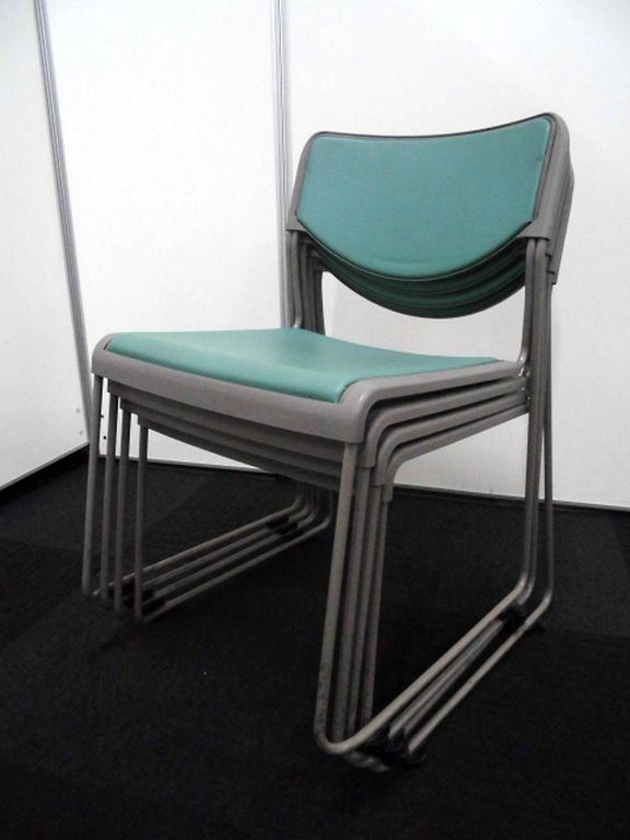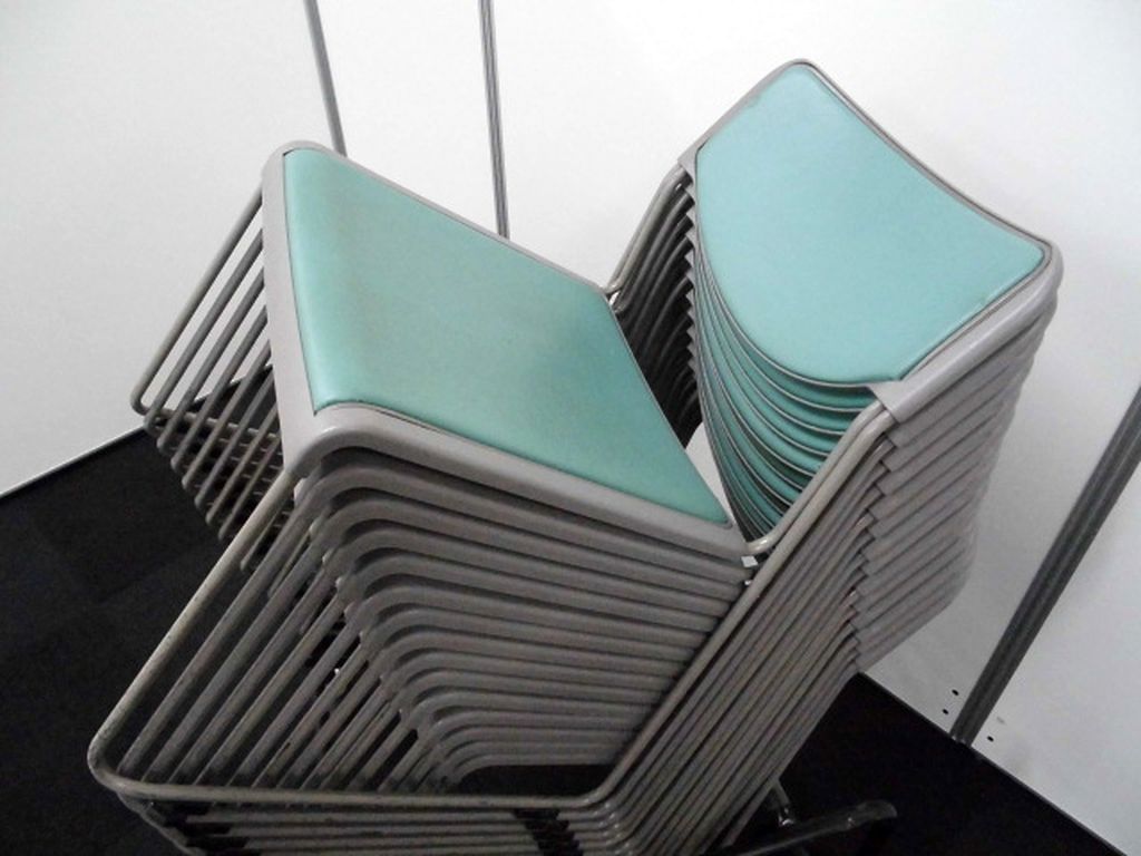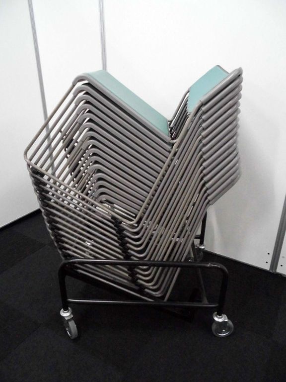 【ビニールレザー】スタッキングチェア15脚(グリーン) + チェア専用台車- 立川・八王子店