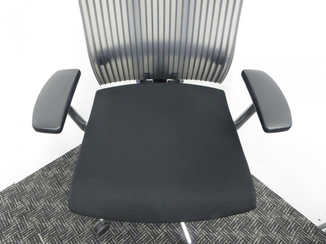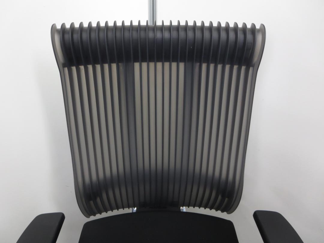 見た目は少し硬そうに見えるエラストマー素材ですが、座ってみると程よいしなり具合のやわらかな座り心地で、背中が痛くなるようなことはまるでありません。面ではなく線で支えることで、背面の通気性の良さは抜群です。