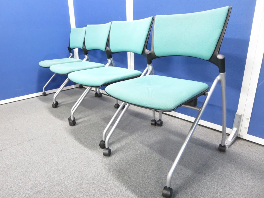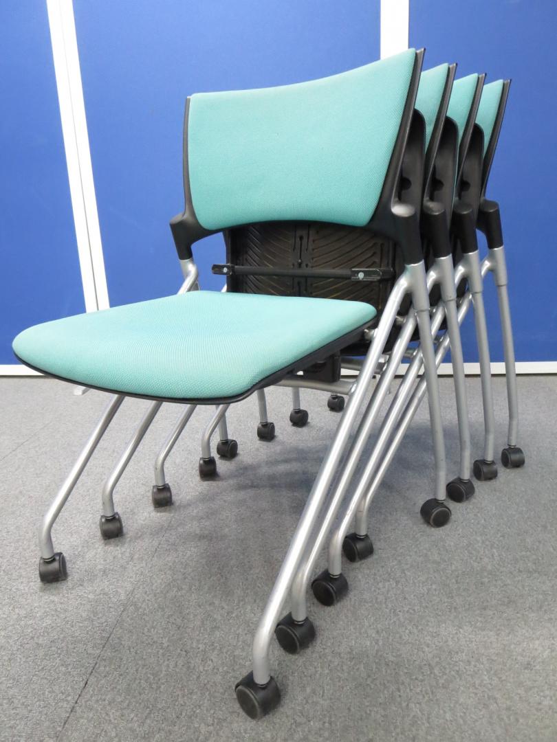 【自然にフィットする背もたれ!】■ネスティングチェア マノス(MANOSS) ソフトグリーン ■長時間使用でも疲れにくい座り心地】イトーキ製(ITOKI)水平スタッキングチェア- 川崎店