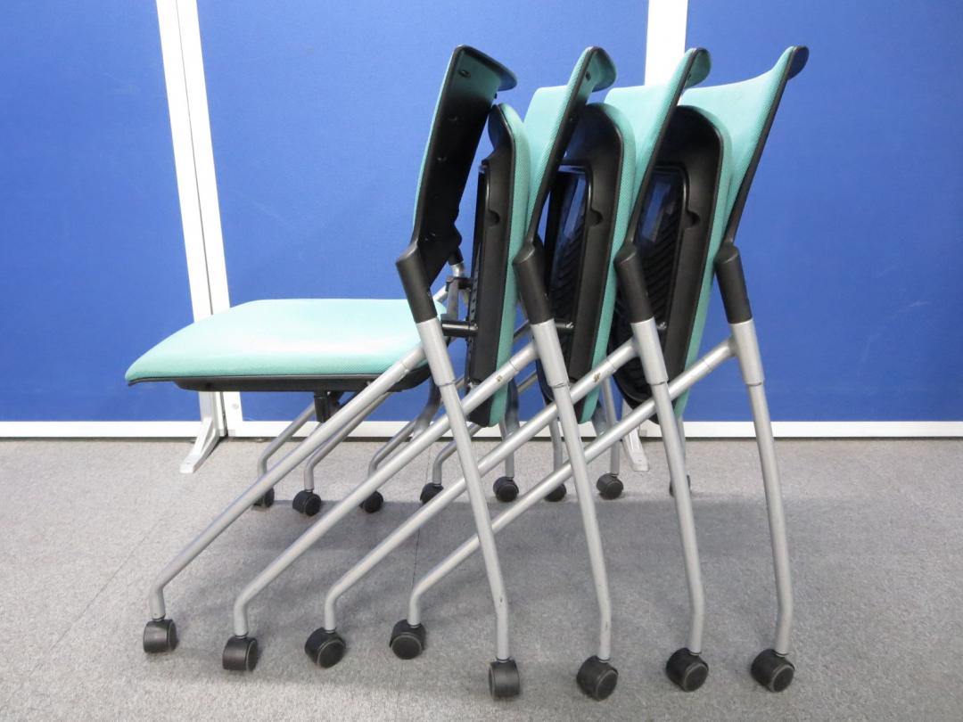 【お得な4脚セット!】■ネスティングチェア マノス(MANOSS) ソフトグリーン■【自然にフィットする背もたれ!】イトーキ製(ITOKI)・ネスタブルチェア【長時間使用でも疲れにくい座り心地】- 川崎店