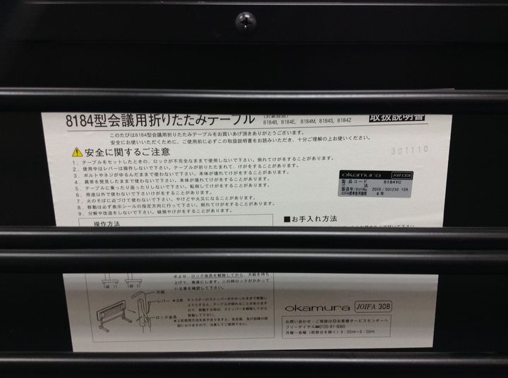 【中古】 8184YC オカムラ/okamura スタックテーブル(長机/折りたたみ/会議用) 181491