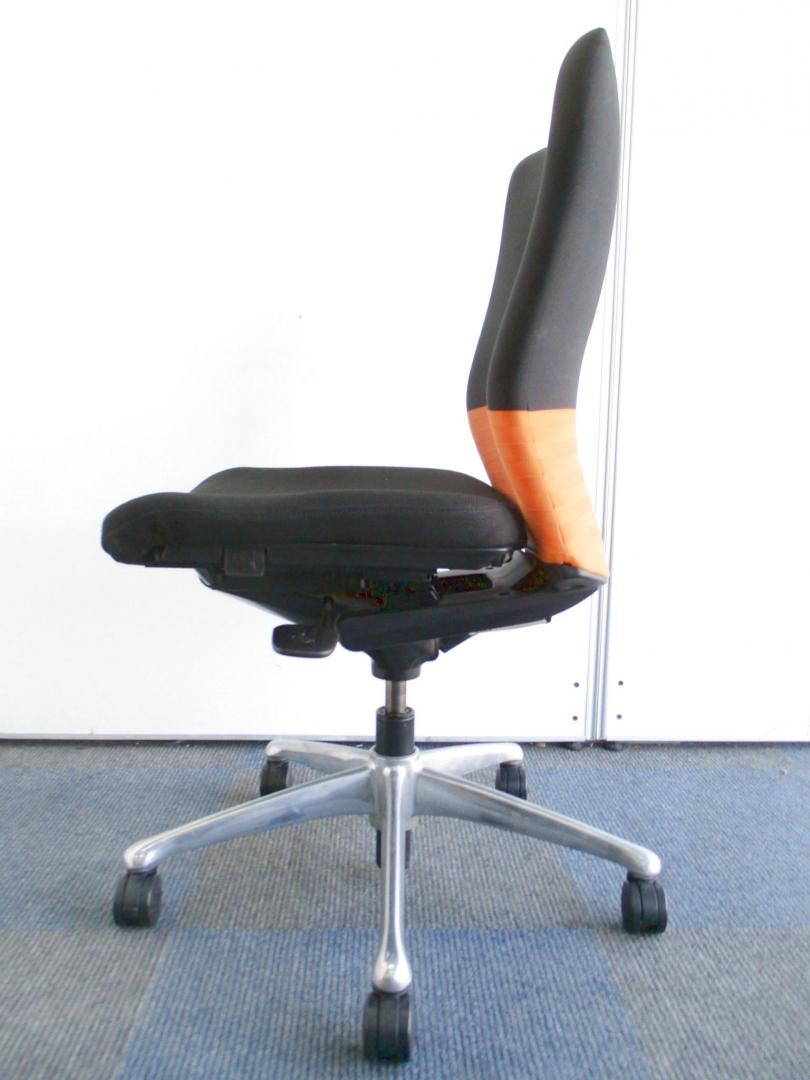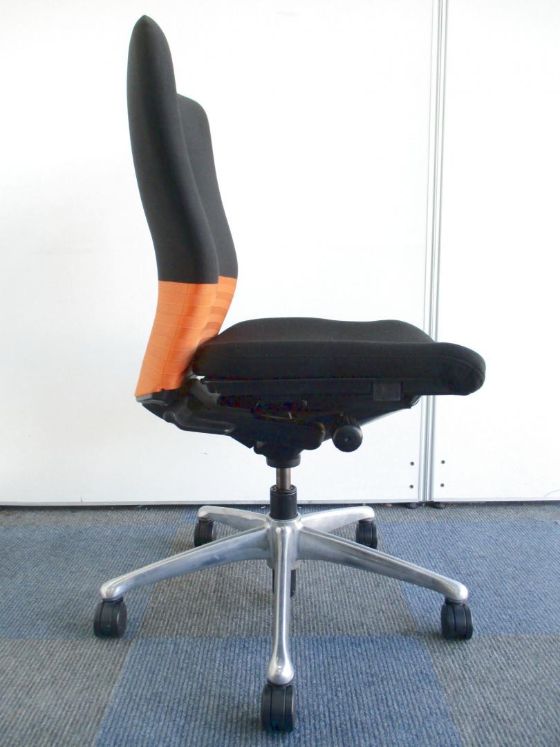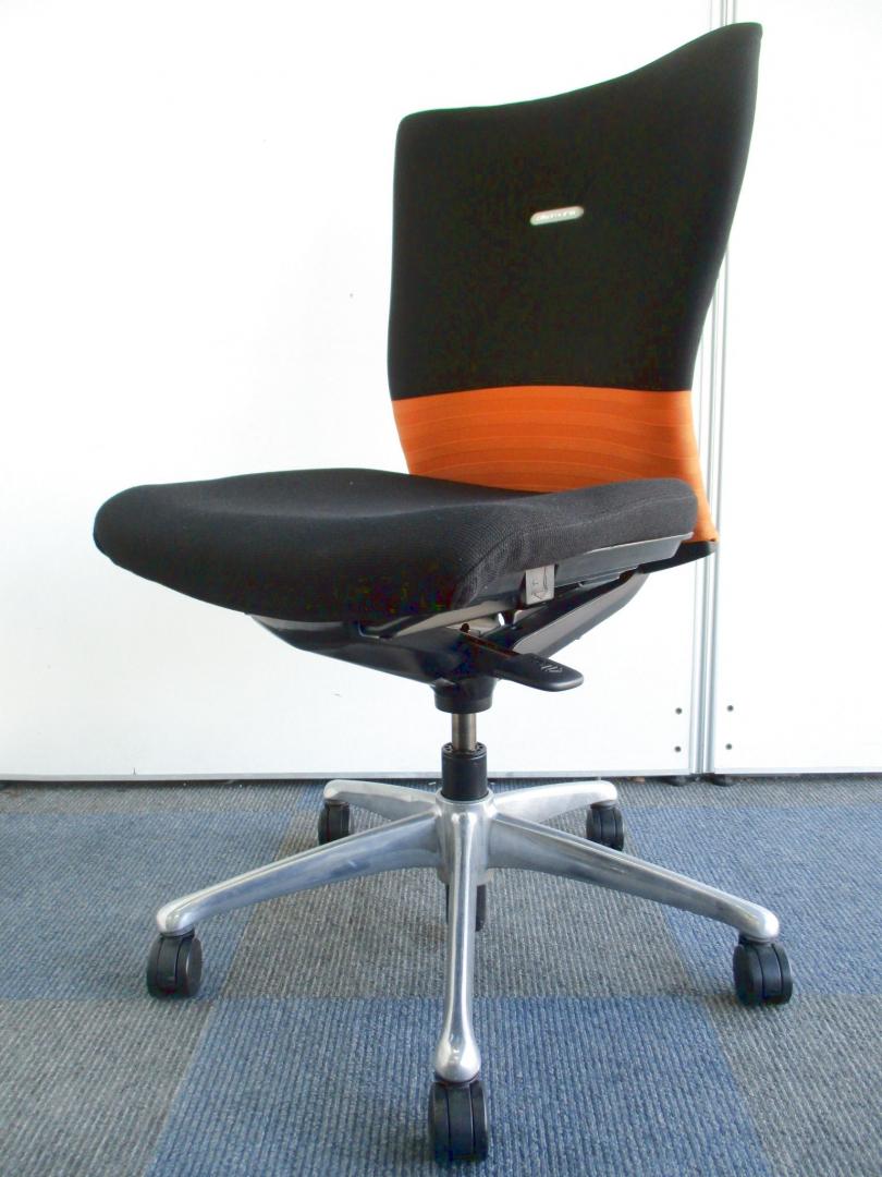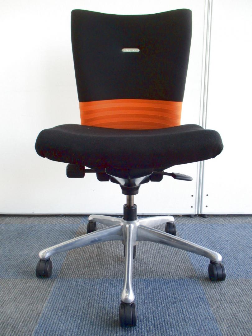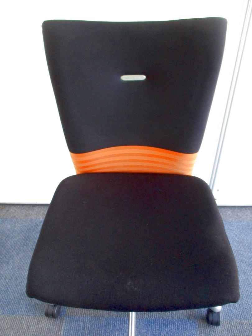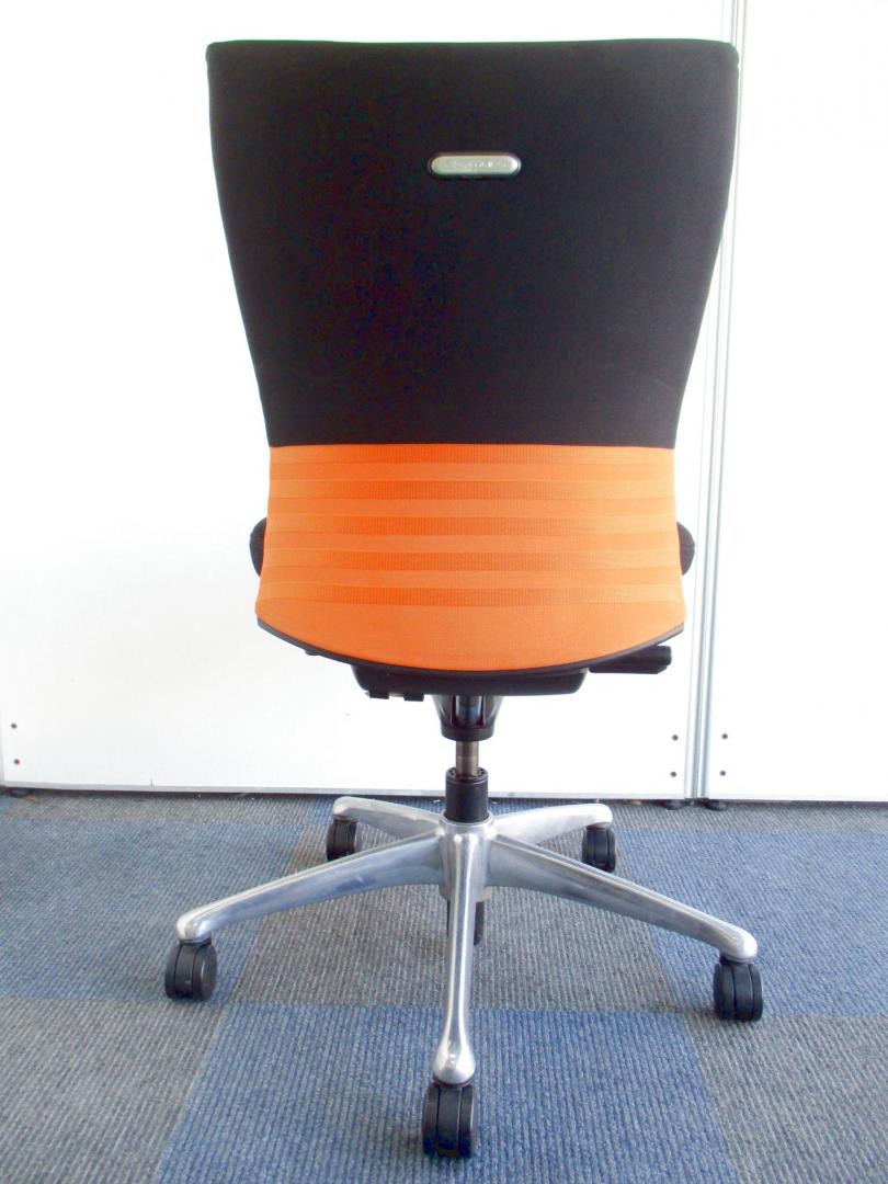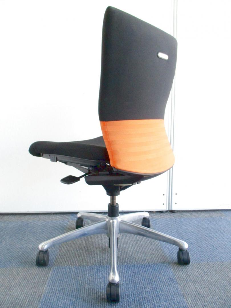 【人間工学に基づいた快適な座り心地!背あてのしなやかな曲線が背中にフィット!】■オカムラ製 フィーゴチェア (feego) 肘無ミドルバック シームレスタイプ ■肘無 ■ブラック×オレンジ ※コートハンガー外し跡のある商品となります。【入替セールにつき30%OFF!】