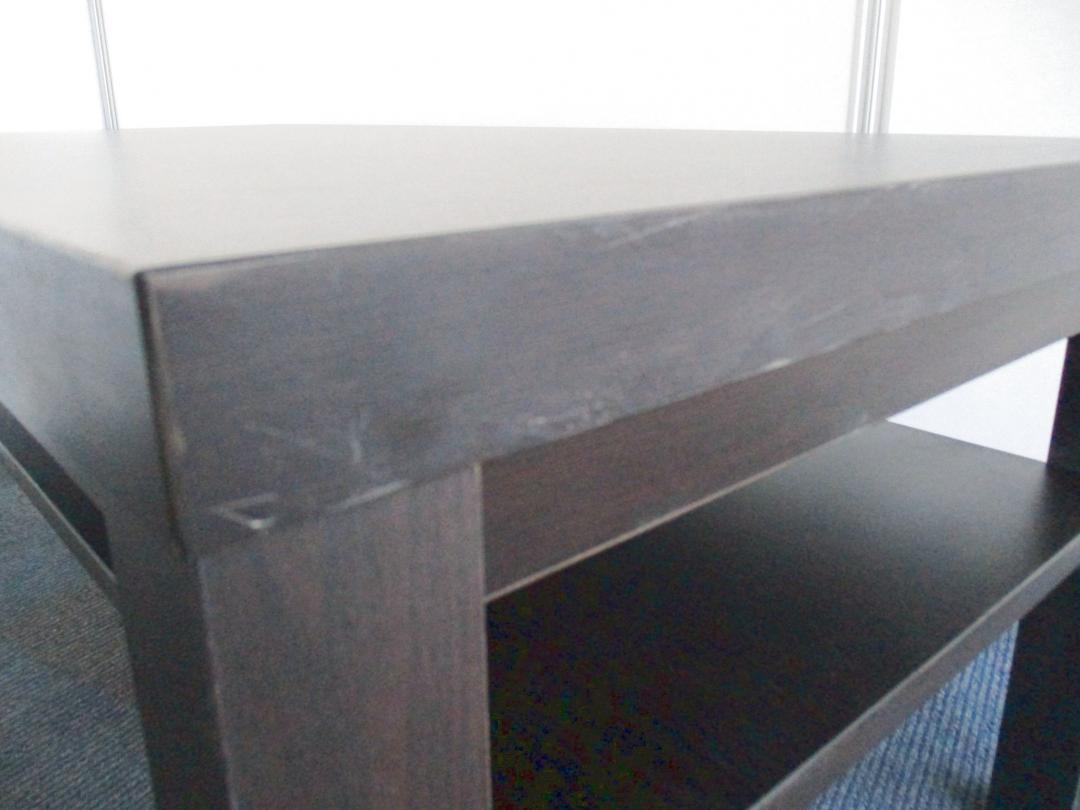 - 若干ありソファの場合、破け、ホツレ、へたり、しわ等が一部ある。(例、背もたれ、肘かけ、座面等にある。)センターテーブルの場合、傷・凹みが一部ある。(例、天板、 脚にある。)