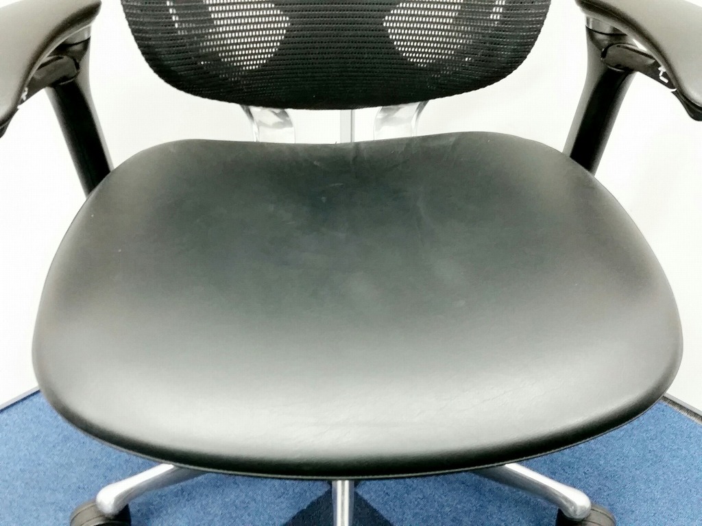 入替セール品につきお値下げ!【世界で認められた革新的タスクチェア!人間工学に基づいた快適な座り心地を実現!】オカムラ(okamura) コンテッサ (Contessa) 革張り ハイバック肘付き 可動肘 ブラック 【座面シワ・リクライニングロック解除時異音があるため、Bランク品】【現物画像】