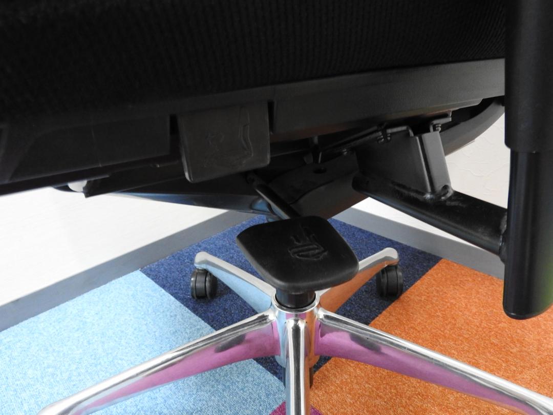 座面奥行調節:前後60mm(15mmピッチ4段階)でスライドする。/ハンガー:上下スライド75mm