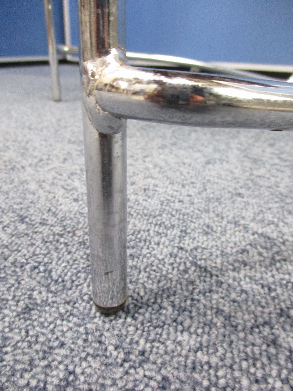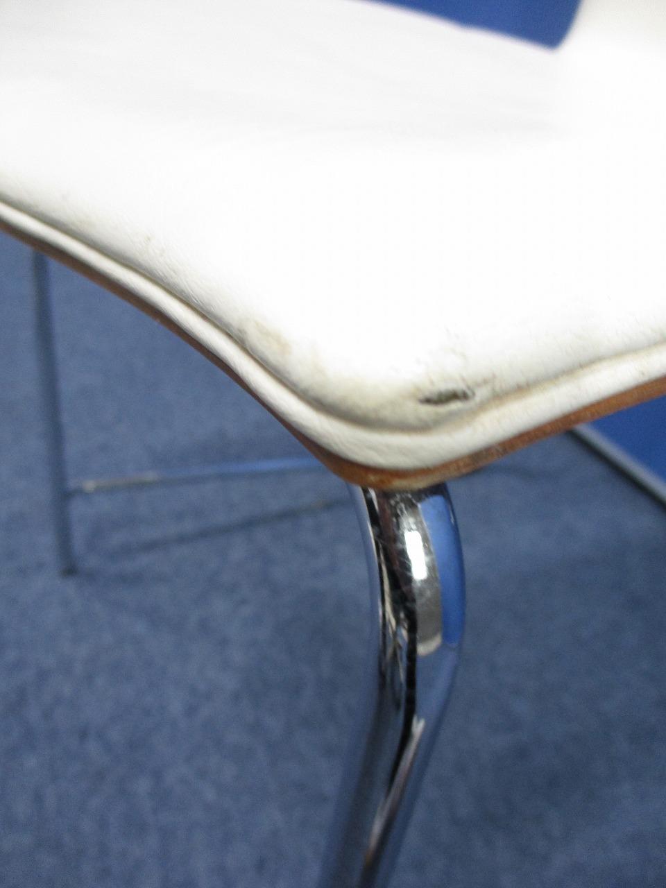 - かなり強い濃い黄ばみ・変色が商品全体にある。(例、座面・背もたれ、脚部等にある。)