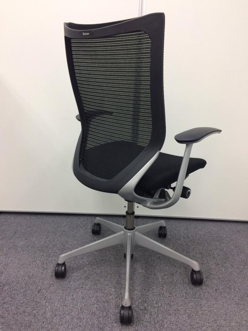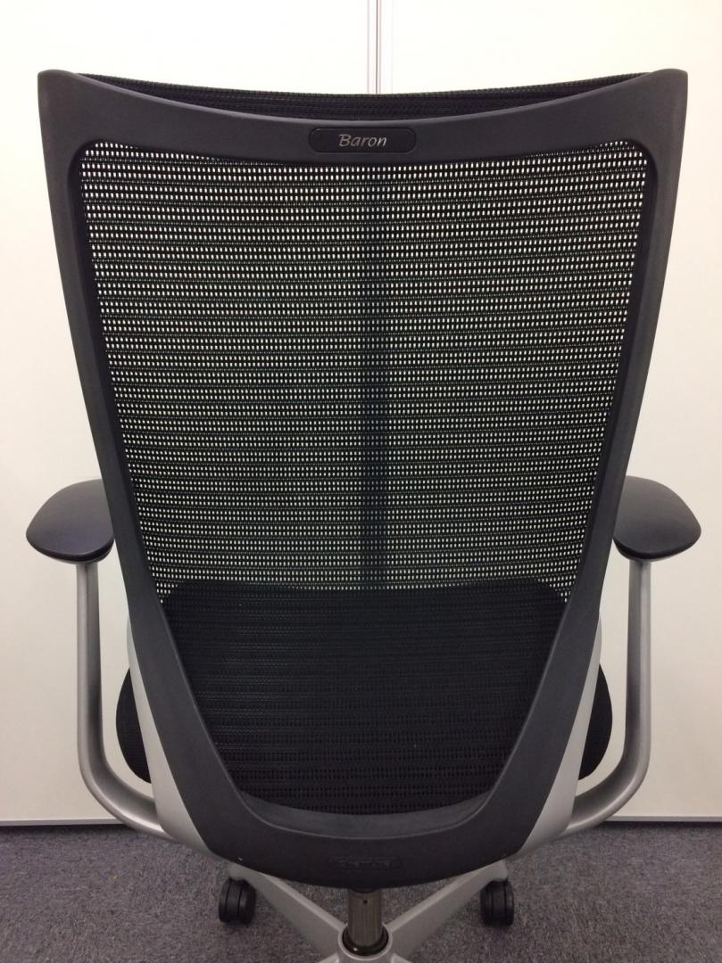 【硬めの座面が大人気!国産メッシュチェアの代表格!オフィスの執務室、会議室におすすめ!】■オカムラ(okamura)製 バロン(Baron)チェア 肘付き ハイバック 背面メッシュ ■固定肘 ■色:ブラック【IB】