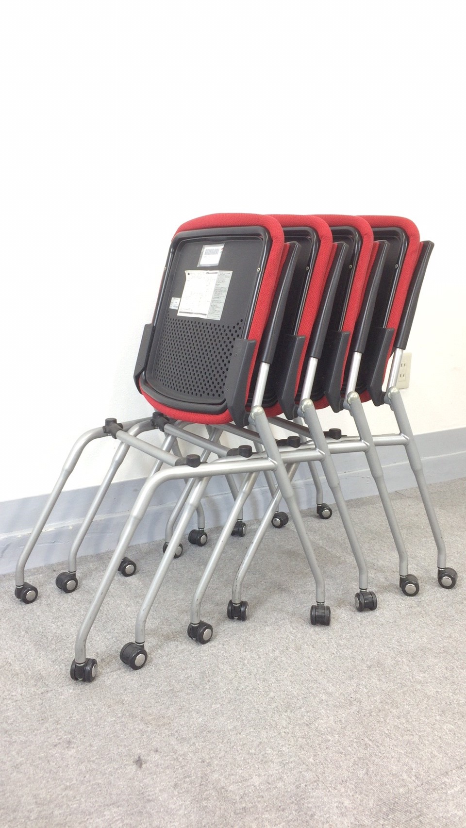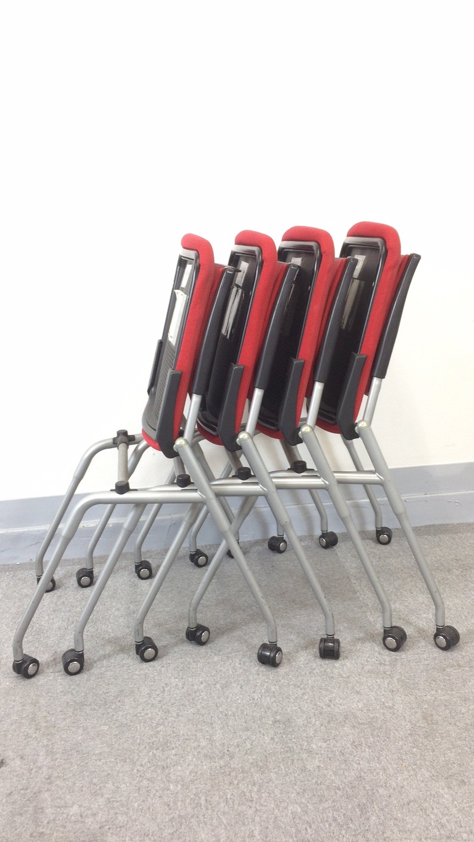 【KS】[2セット入荷]キャスター付き 座面が上がり省スペースに収納可能 会議用チェア[ミーティングにピッタリ]- 茨城南店