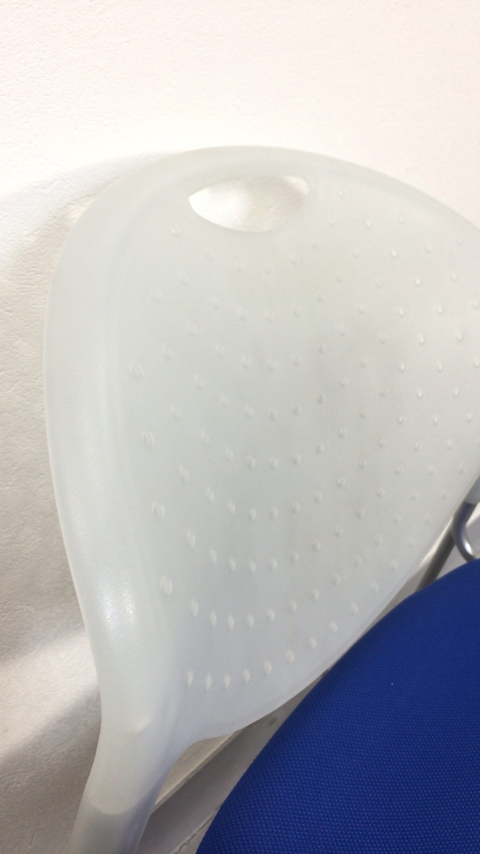 - かなり強い濃い黄ばみ・変色が商品全体にある。(例、座面・背もたれ、脚部等にある。)