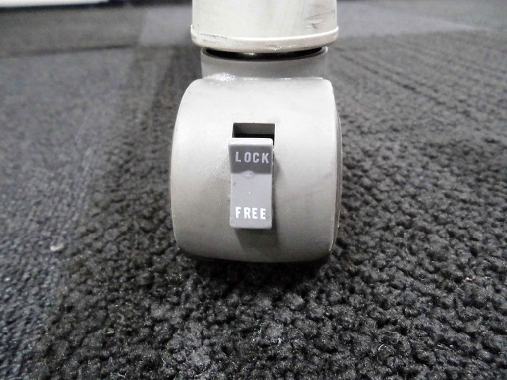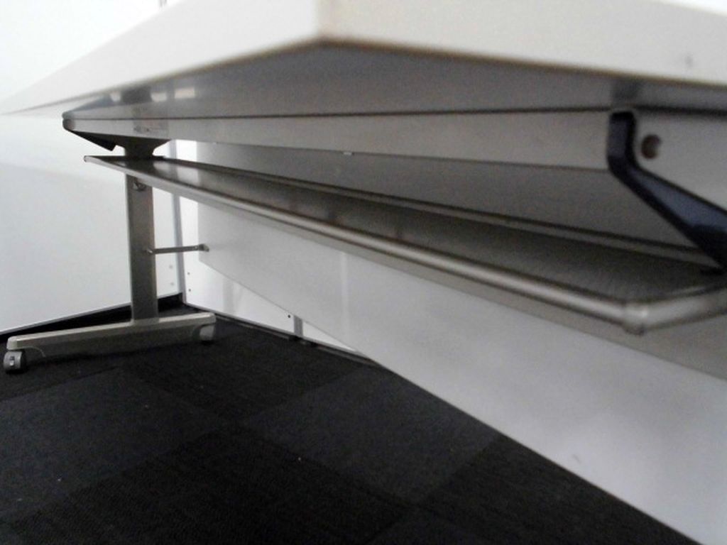 - 一部不具合あり天板歪み、アジャスター無し、キャスター使用不可ようなそのテーブルの本来の効用を果たすための機能以外の一部が使用不可な状態。(例、キャスターロッ ク機能使用不可、棚板無し等がある。)