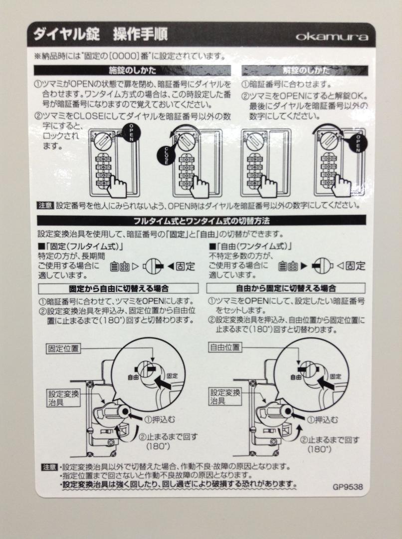 ※マスターキー(非常解除キー)は付いておりません。