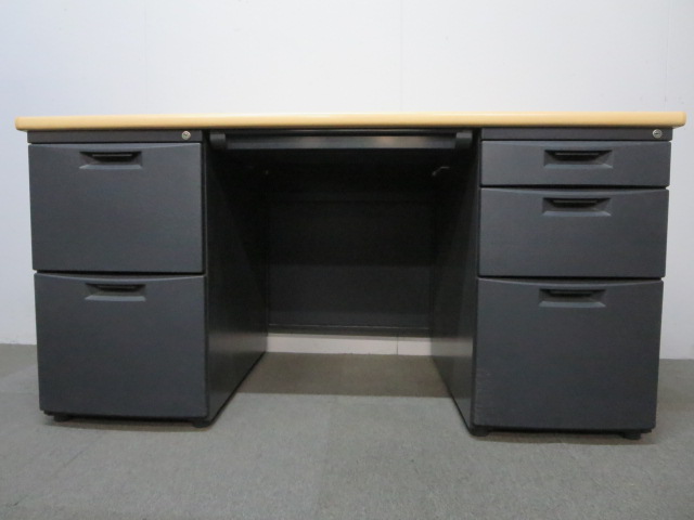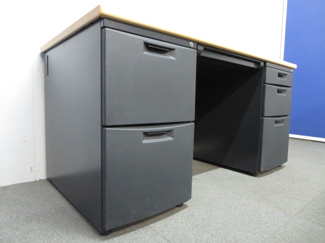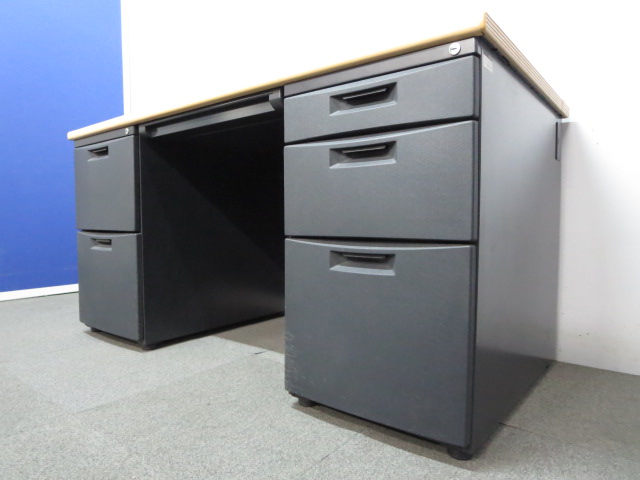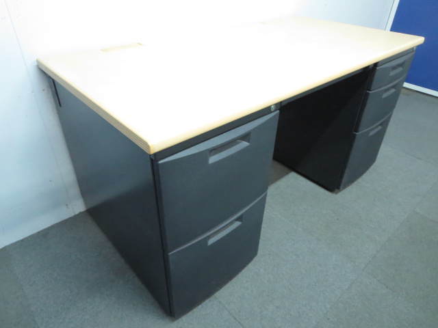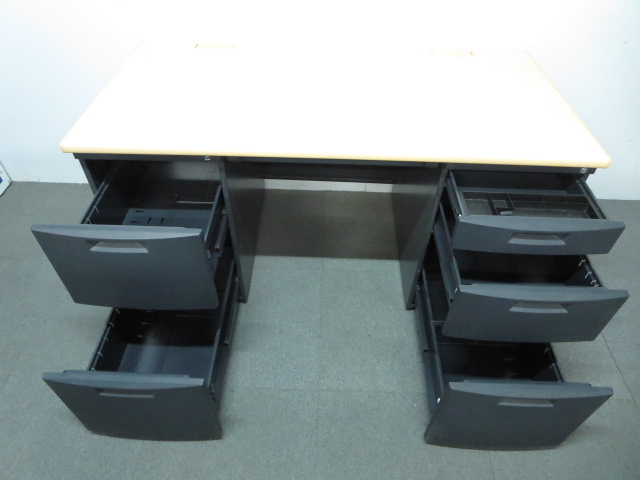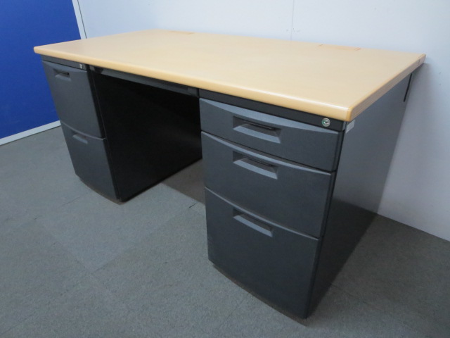 ■両袖机 横幅1400mm ■【天板木目柄デザイン!】メープルカラー■イトーキ製(ITOKI)■CZデスクシリーズ- 川崎店