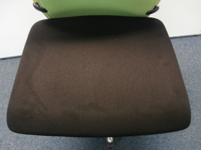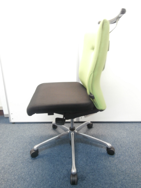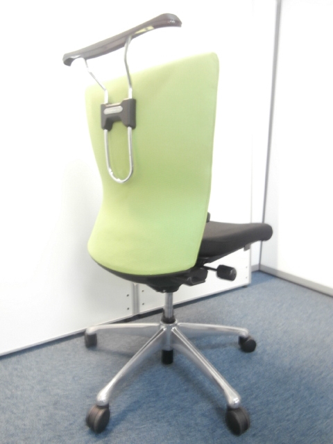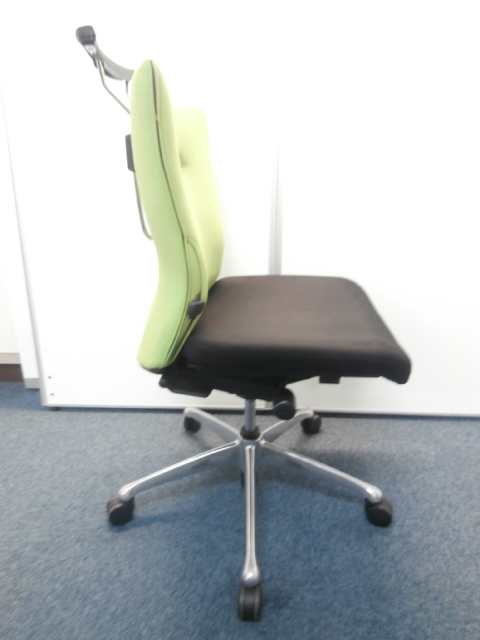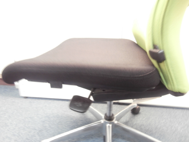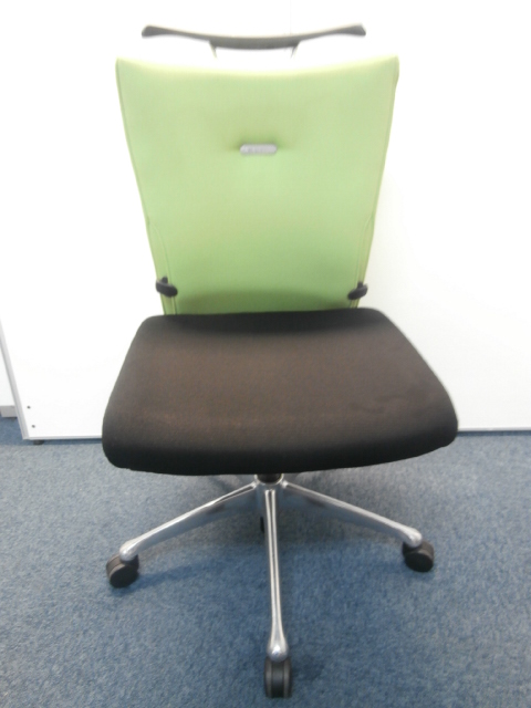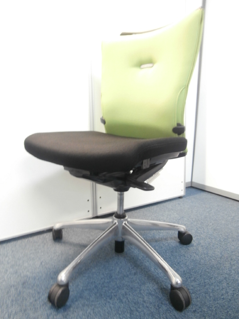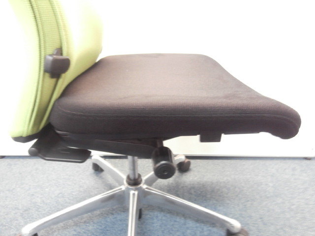 オカムラ製 フィーゴ シームレスタイプ ブラック×ライトグリーン【機能とデザインを兼ね備えたチェア】肘外し