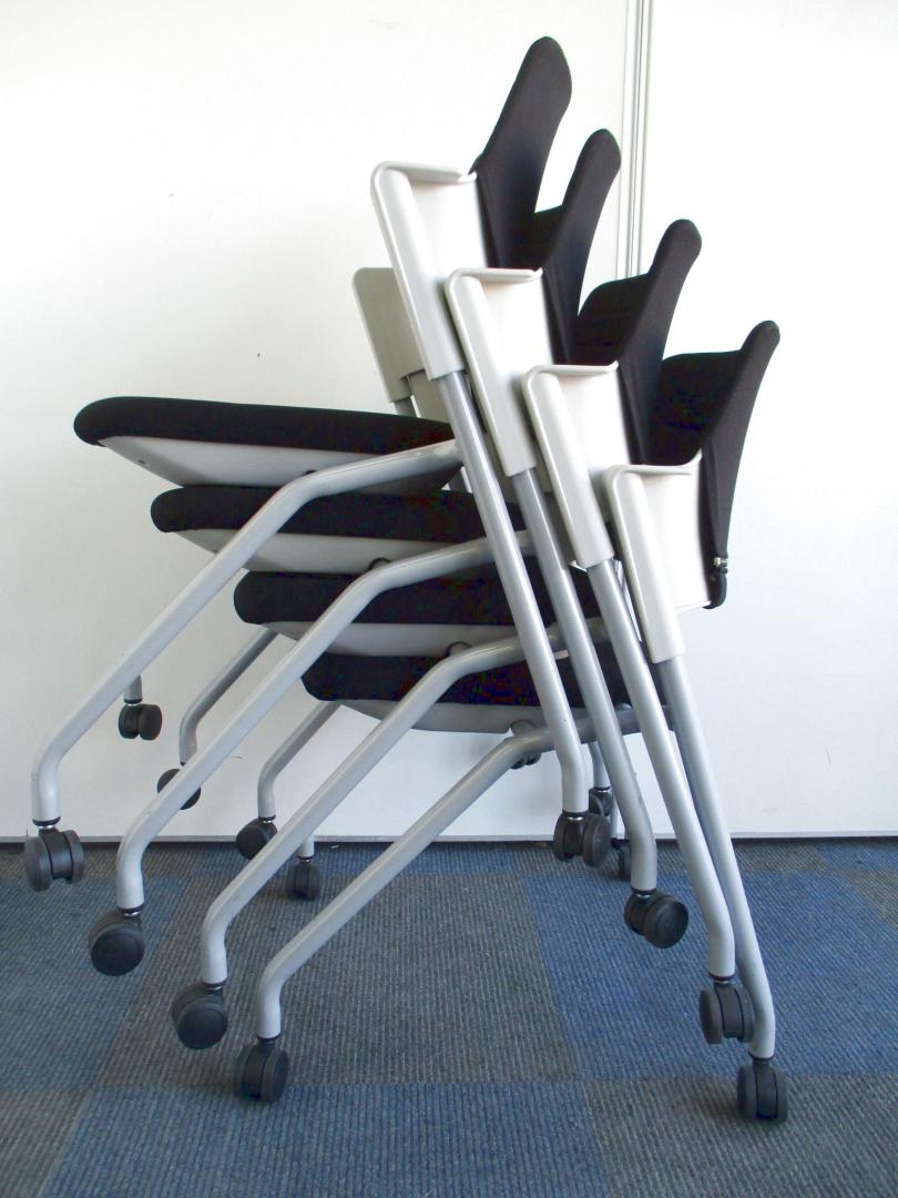 座面を跳ね上げてネスティング、そのまま重ねてスタッキングと