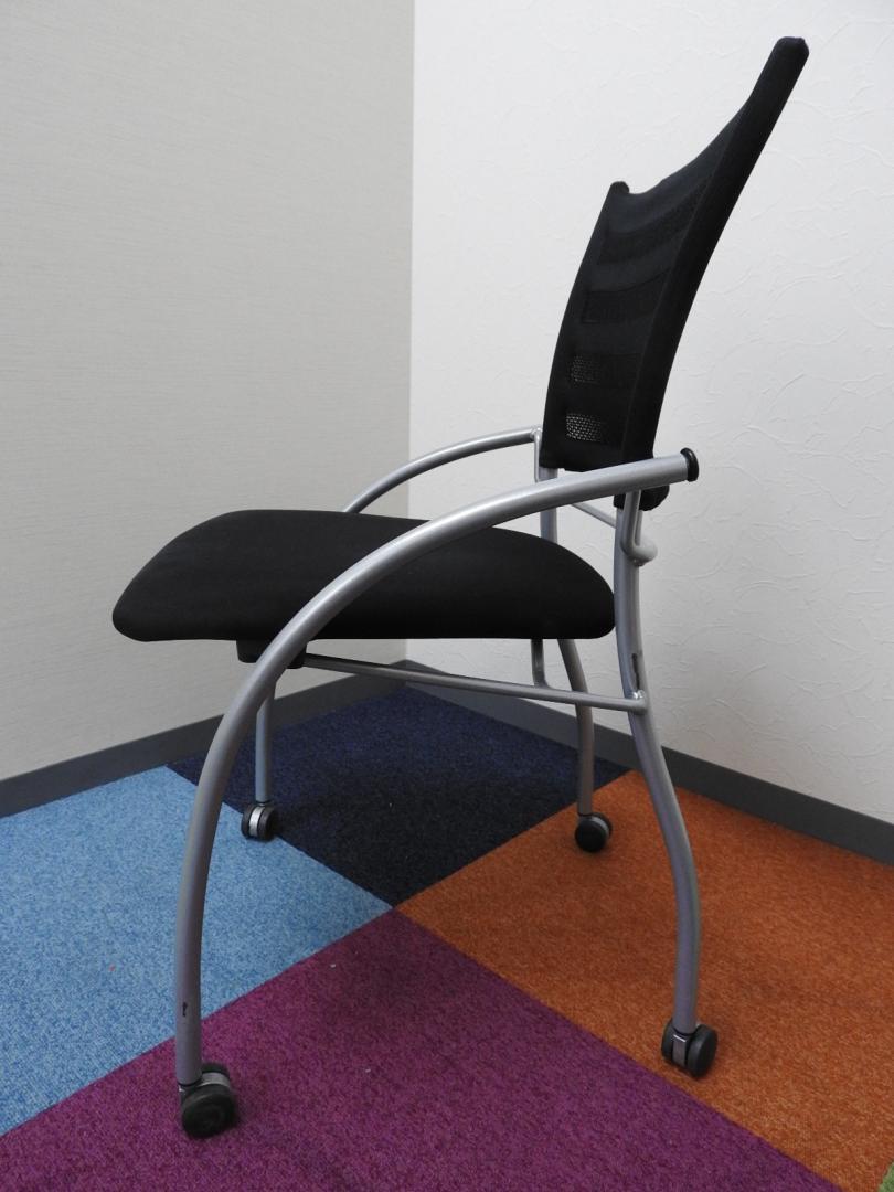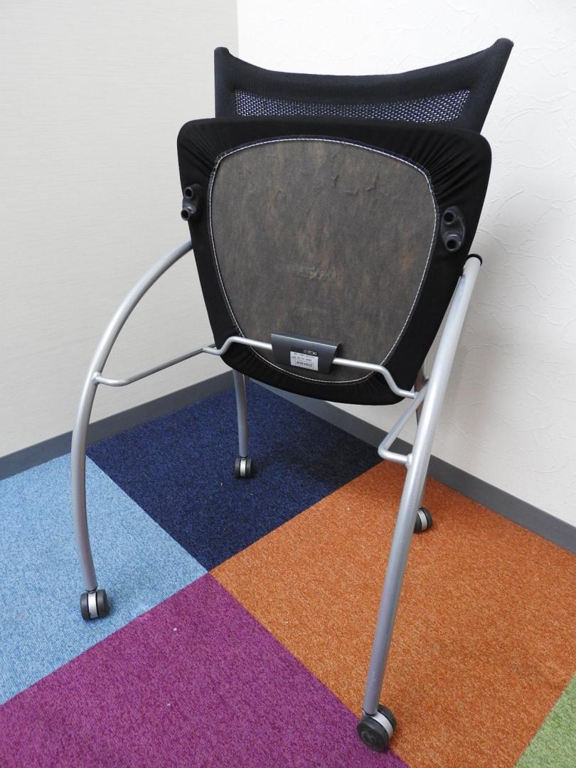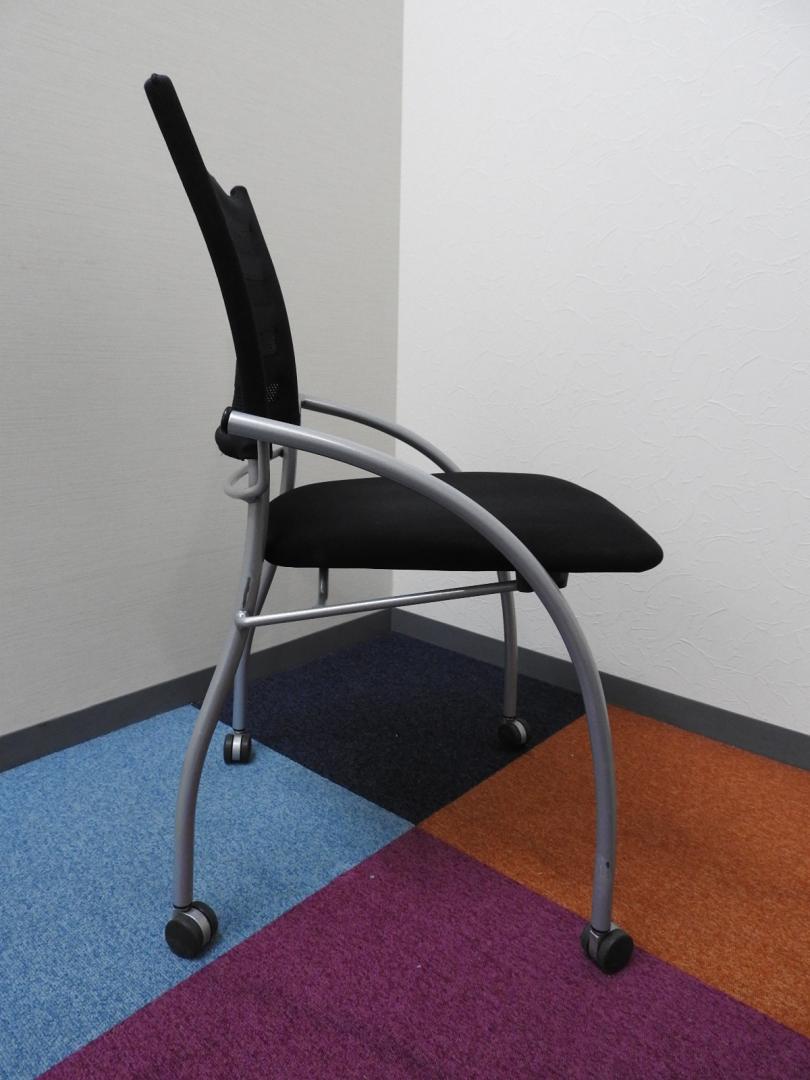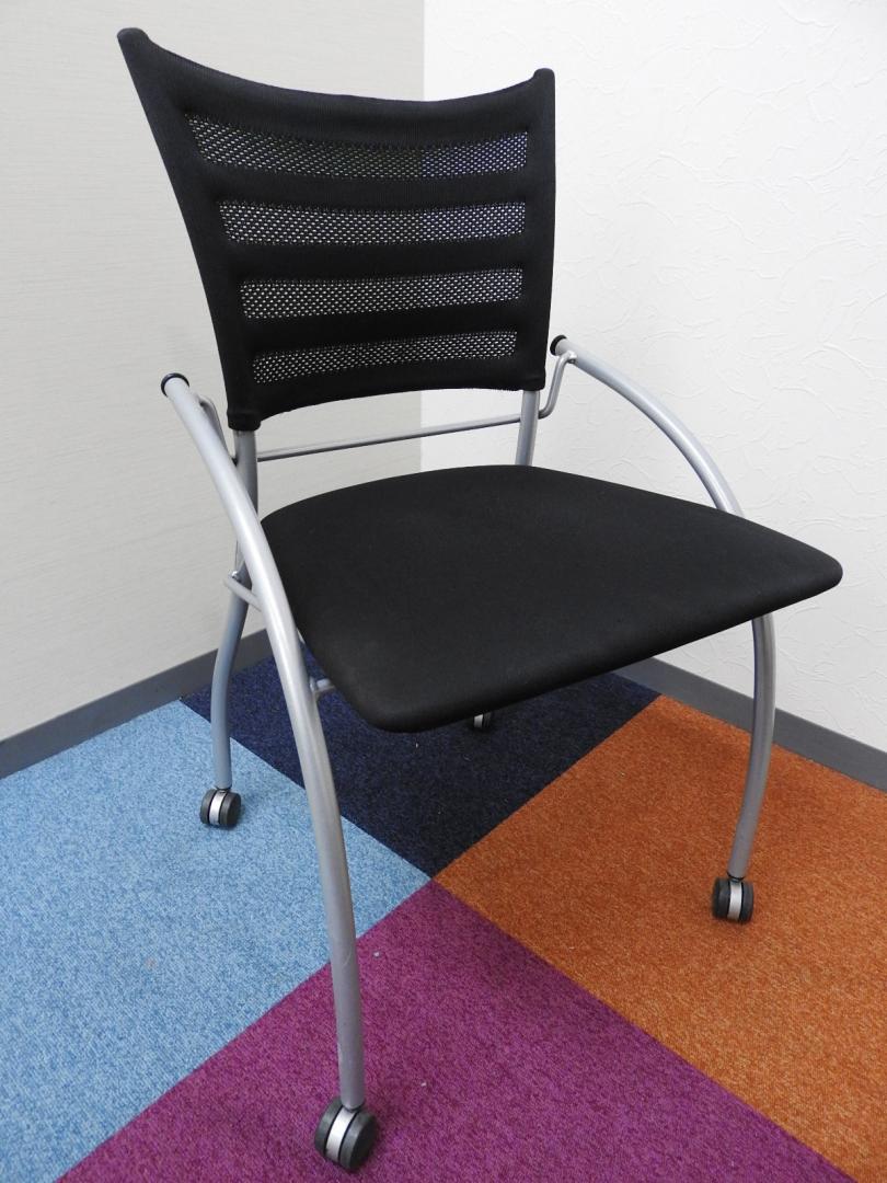 【キャスターの動きに違和感があるため、お安く4脚セットになります】スタイリッシュなブラックネスティングチェア!コンパクトで持ち運びもラクラク!【RP】- 品川・三田店
