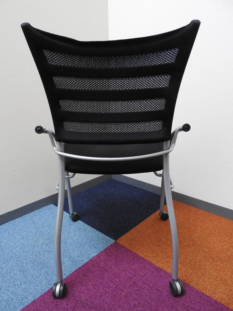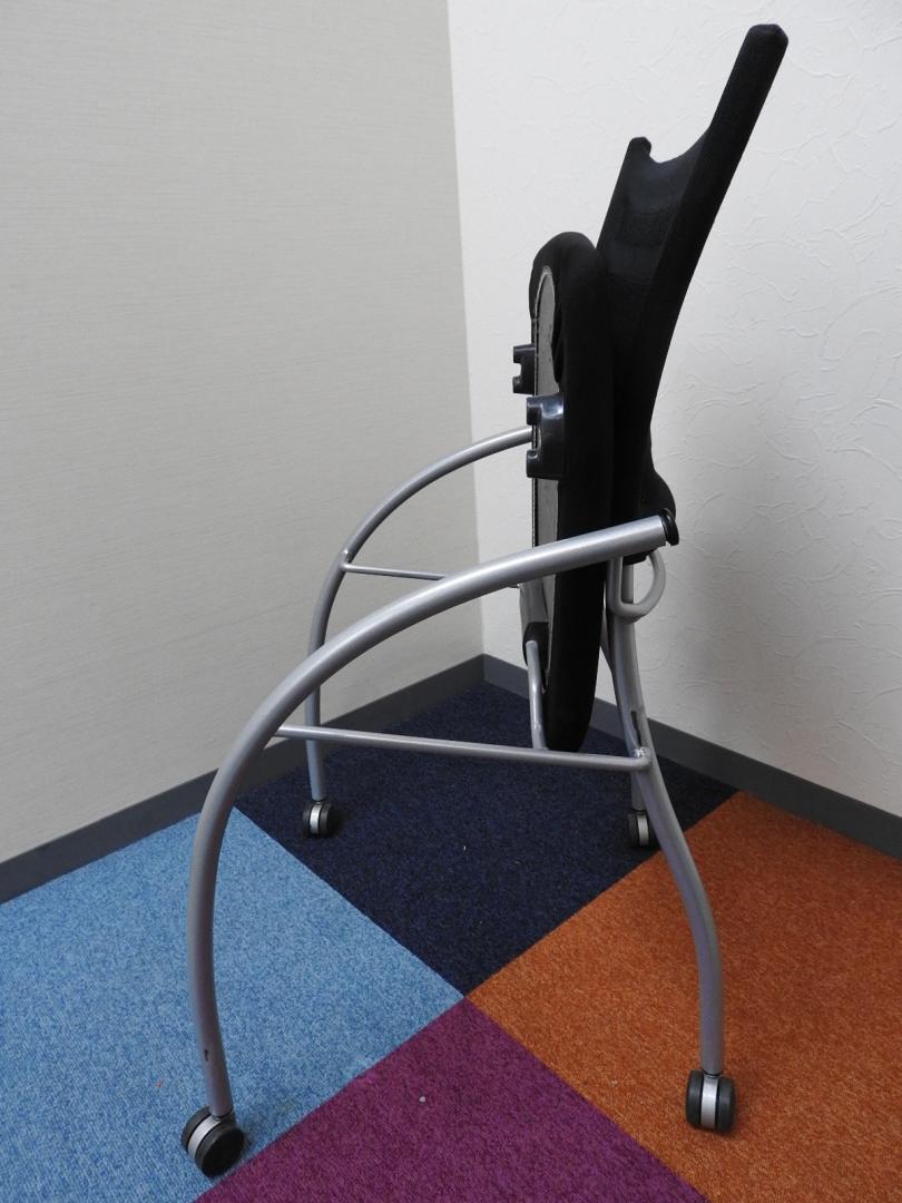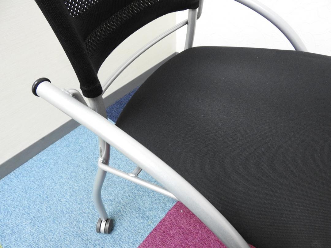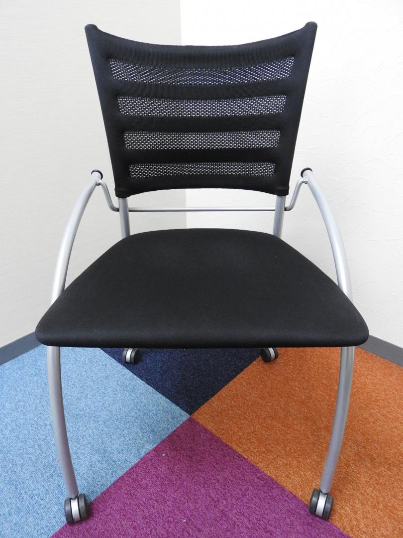 【キャスターの動きに違和感があるため、お安く4脚セットになります】スタイリッシュなブラックネスティングチェア!コンパクトで持ち運びもラクラク!【RP】- 品川・三田店