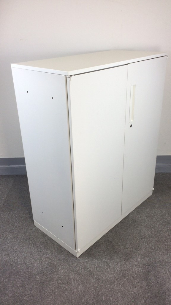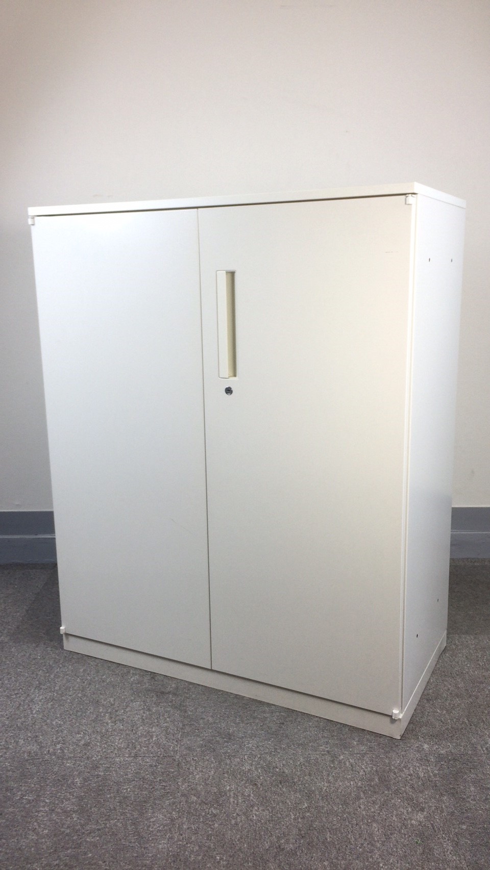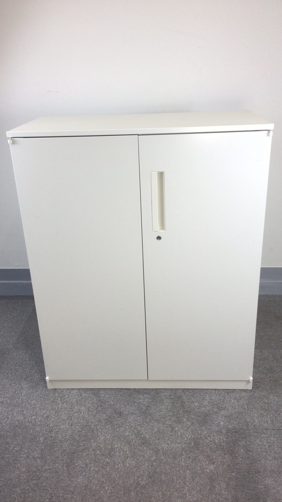 【収納物がひとめで分かる両開き戸タイプ!】■コクヨ(KOKUYO)製 エディア(EDIA)シリーズ 両開き書庫 ローキャビネット H1130㎜ ■天板・ベース付 ■ホワイト ■シリンダー錠