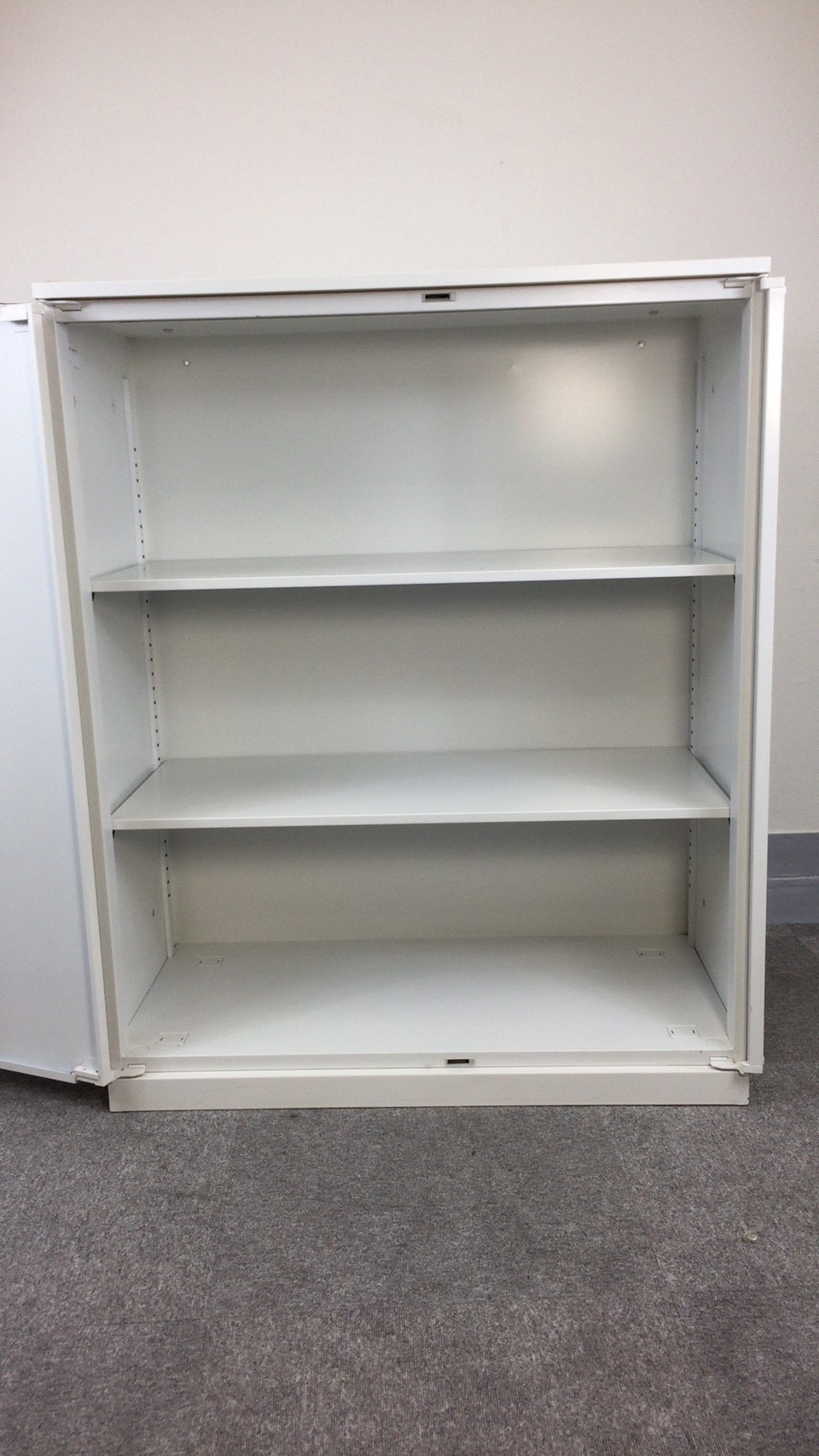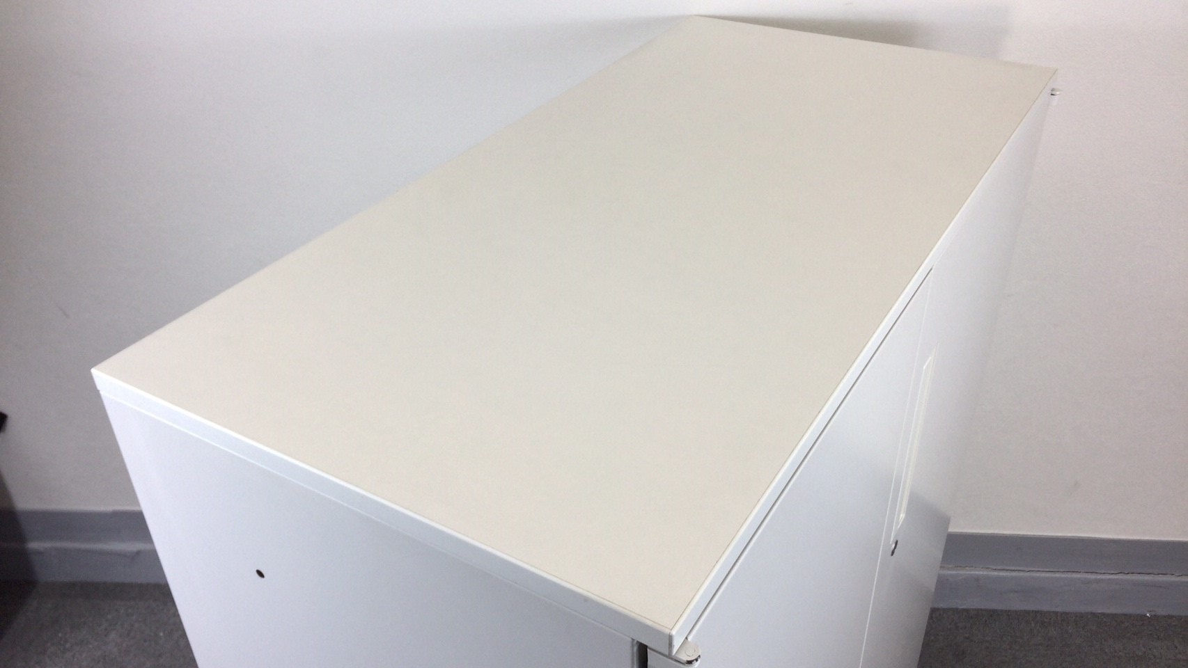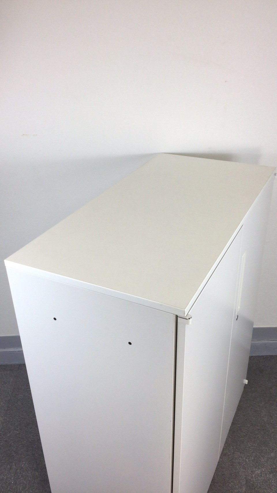 【収納物がひとめで分かる両開き戸タイプ!】■コクヨ(KOKUYO)製 エディア(EDIA)シリーズ 両開き書庫 ローキャビネット H1130㎜ ■天板・ベース付 ■ホワイト ■シリンダー錠