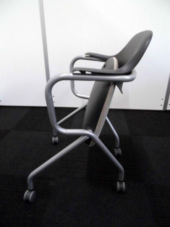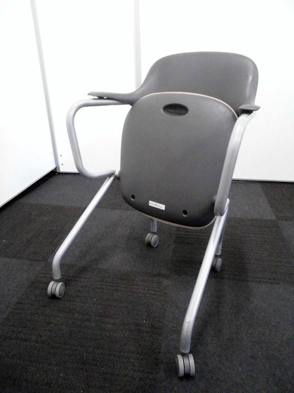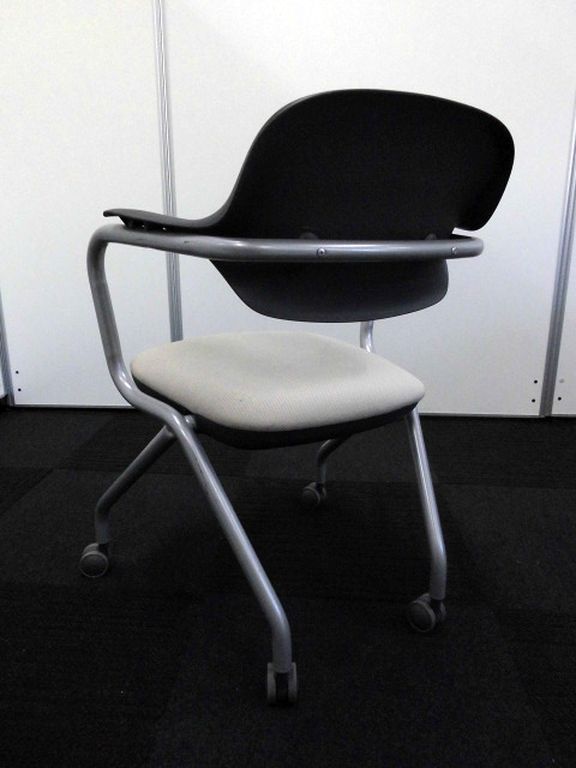 【キャスター付ミーティングチェア】ネスティングチェア|肘付|ブラック×アイボリー- 立川・八王子店