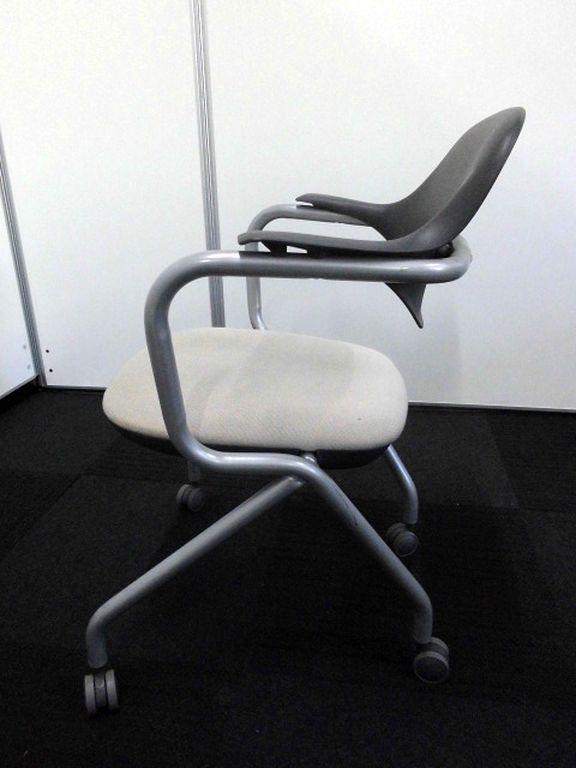 【訳有¥700】ネスティングチェア|肘付|ブラック×アイボリー【キャスター付】- 立川・八王子店