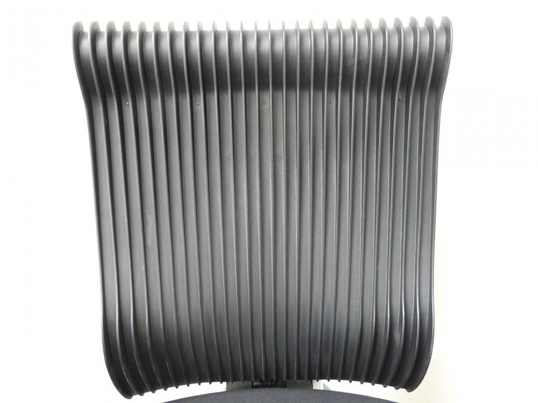 見た目は少し硬そうに見えるエラストマー素材ですが、座ってみると程よいしなり具合のやわらかな座り心地で、背中が痛くなるようなことはまるでありません。面ではなく線で支えることで、背面の通気性の良さは抜群です。