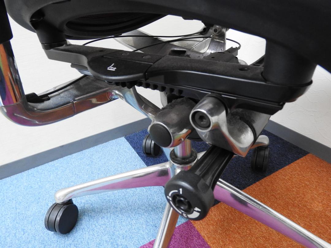 - 座面の前後スライド調整レバーで操作(前後50mm分調整で)できます。(グラデーションサポートメッシュタイプを除く)