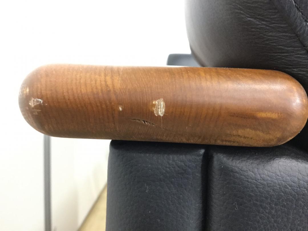 キズ:木製肘・テーブルに小スレ キズ有り。足元に革スレ小あり