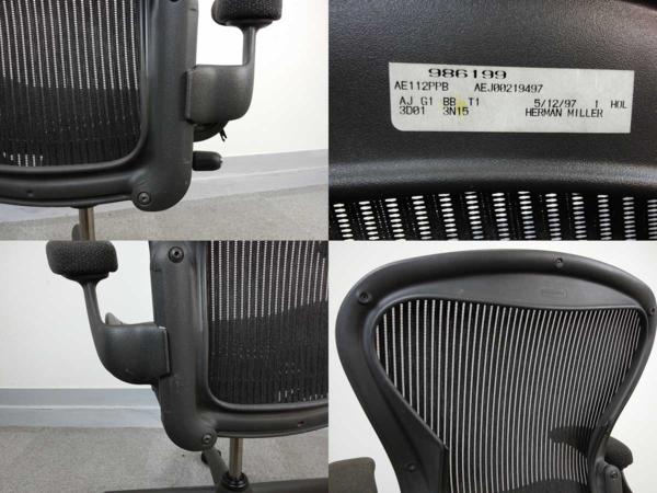 【★状態イマイチのためお安く!】■ハーマンミラー製 アーロンチェア Bサイズ 固定肘 ※キズあり・ランバーサポート無・昇降ガス圧弱めのためお安く!【訳あり特価品】