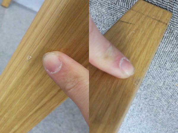 - 壊れている天板歪み、アジャスター無し、キャスター使用不可のようにそのテーブルの本来の効用を果たすための機能に不具合がある。