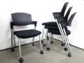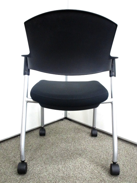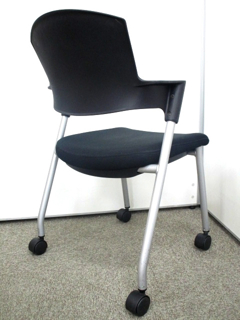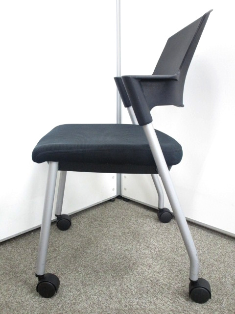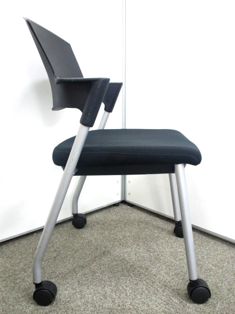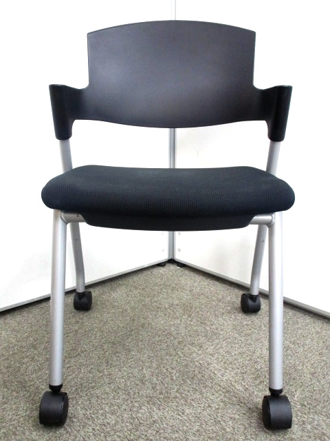 【6/16・8脚入荷予定!】【シンプルスマートなスタッキングチェア!分厚いクッションで長時間でも快適な座り心地!】■コクヨ製 プロッティ スタッキングチェア 肘付ミーティングチェア ■固定肘 ■キャスター付 ■ブラック ■背面樹脂 オフィスバスターズ梅田本店
