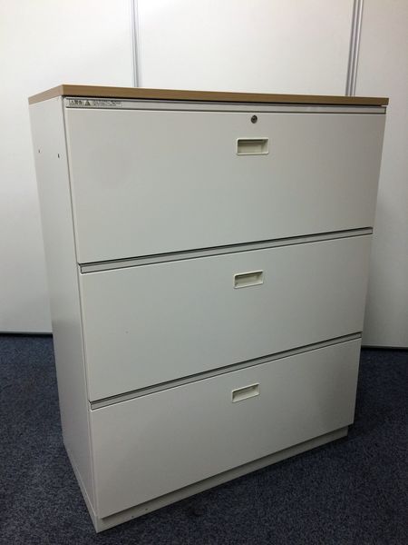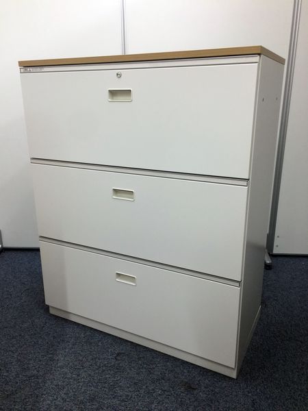 【A4ファイルも沢山収納可能!ホワイトカラーの人気シリーズ3段ラテラル書庫!】/オススメ(おすすめ) /人気商品【弊社使用欄:A01013834】3段ラテラル書庫/ローキャビネット/天板付き/ホワイト/シリンダー錠/ITOKI/THIN LINE■イトーキ/シンライン※取っ手部分日焼あり