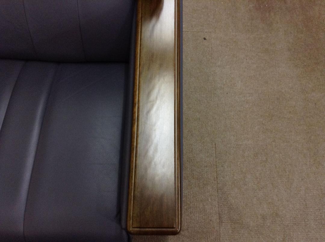 - あり黄ばみ・変色が広い範囲にうっすらある、または濃い黄ばみ・変色が一部ある。(例:三人用ソファ、二人用ソファ、一人用ソファの場合、背もたれ、肘かけ、座面等、 センターテーブルの場合、天板、脚にある。)