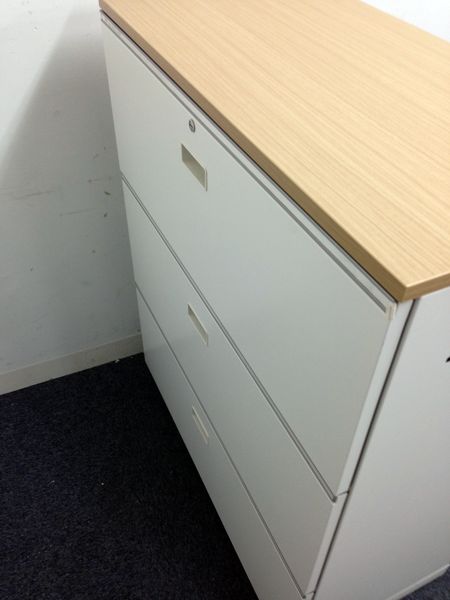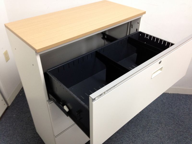 ■イトーキ(ITOKI)製 シンライン (THIN LINE) 3段ラテラル書庫 ローキャビネット ■ホワイト ■シリンダー錠