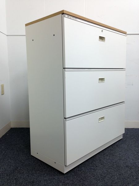 【A4ファイルも沢山収納可能!ホワイトカラーの人気シリーズ3段ラテラル書庫!】/オススメ(おすすめ) /人気商品【弊社使用欄:A01013834】3段ラテラル書庫/ローキャビネット/天板付き/ホワイト/シリンダー錠/ITOKI/THIN LINE■イトーキ/シンライン※取っ手部分日焼あり