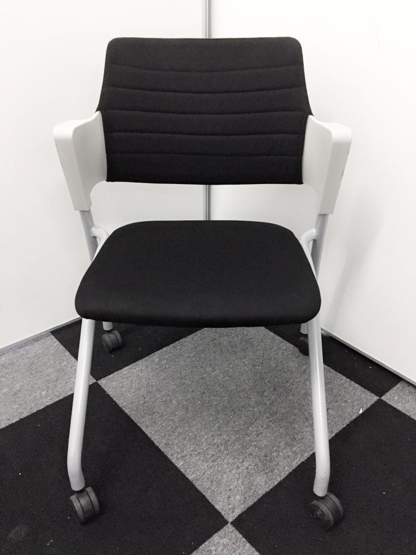 【2015年製が入荷!状態良好】オカムラ製ヴィラージュチェア!■どんなオフィスにも似合うブラック■座面をはねあげて簡単、効率よく収納頂けます。【ミーティング】【キャスター付き】- 在庫数