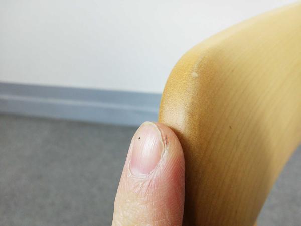 - あり黄ばみ・変色が広い範囲にうっすらある、または濃い黄ばみ・変色が一部ある。(例、座面・背もたれ、脚部等にある。)