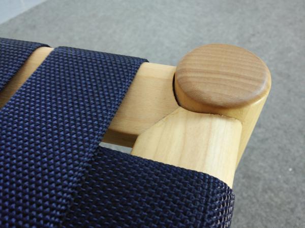 木部とウェビングとのコントラストが美しく、その軽さから女性でも楽に取り扱えます。機能美と上品さのある椅子です。