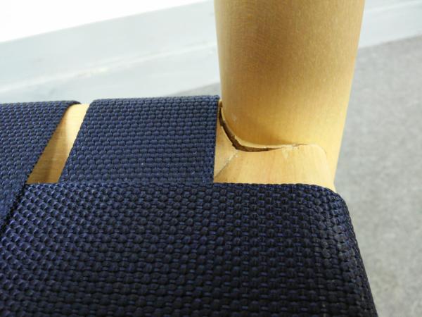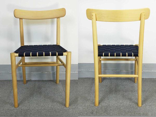 木部とウェビングとのコントラストが美しく、その軽さから女性でも楽に取り扱えます。機能美と上品さのある椅子です。