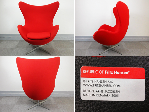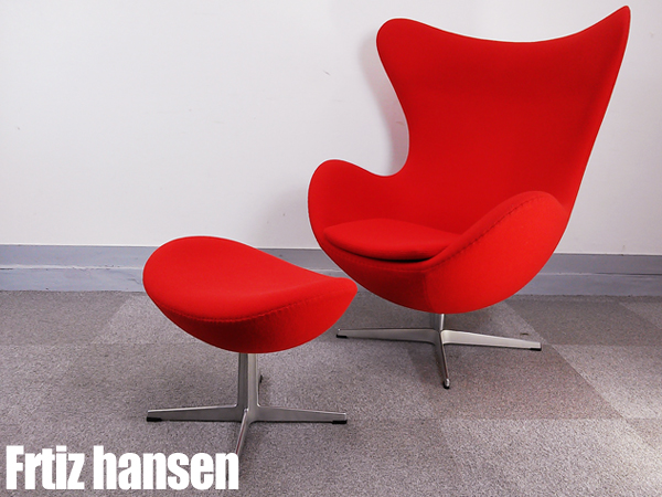フリッツハンセン エッグチェア & オットマン付き 赤新品定価123万- デザイナーズ家具センター