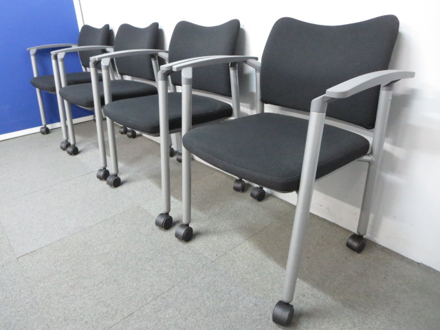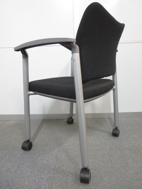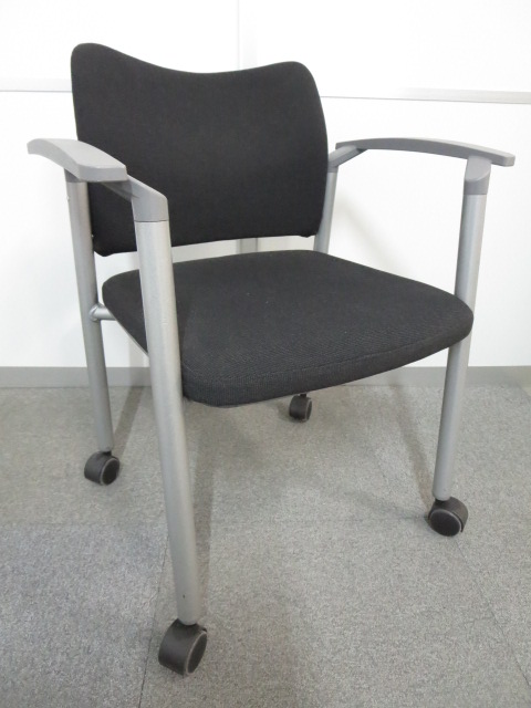 【リラックスできる肘付タイプ!】■ミーティングチェア(キャスター付)ブラック ■LION(ライオン事務器)- 川崎店
