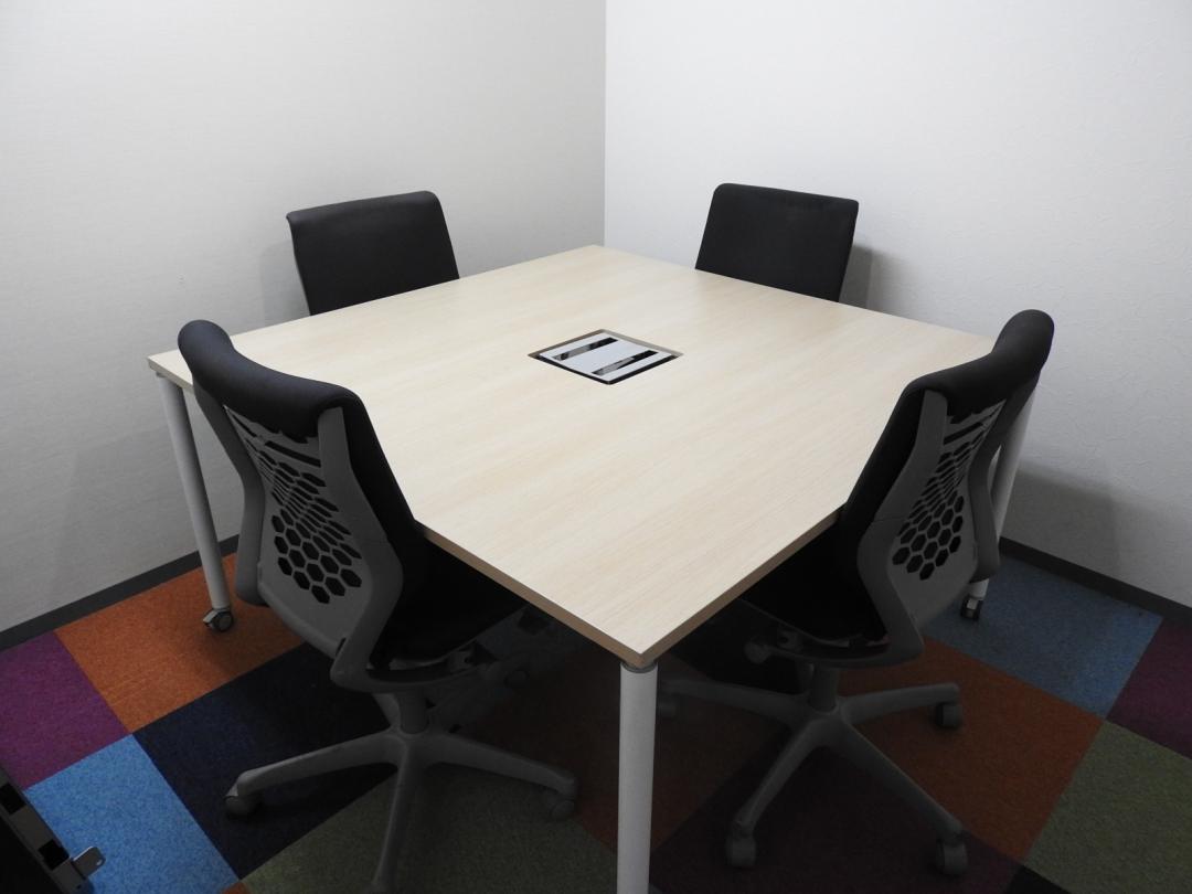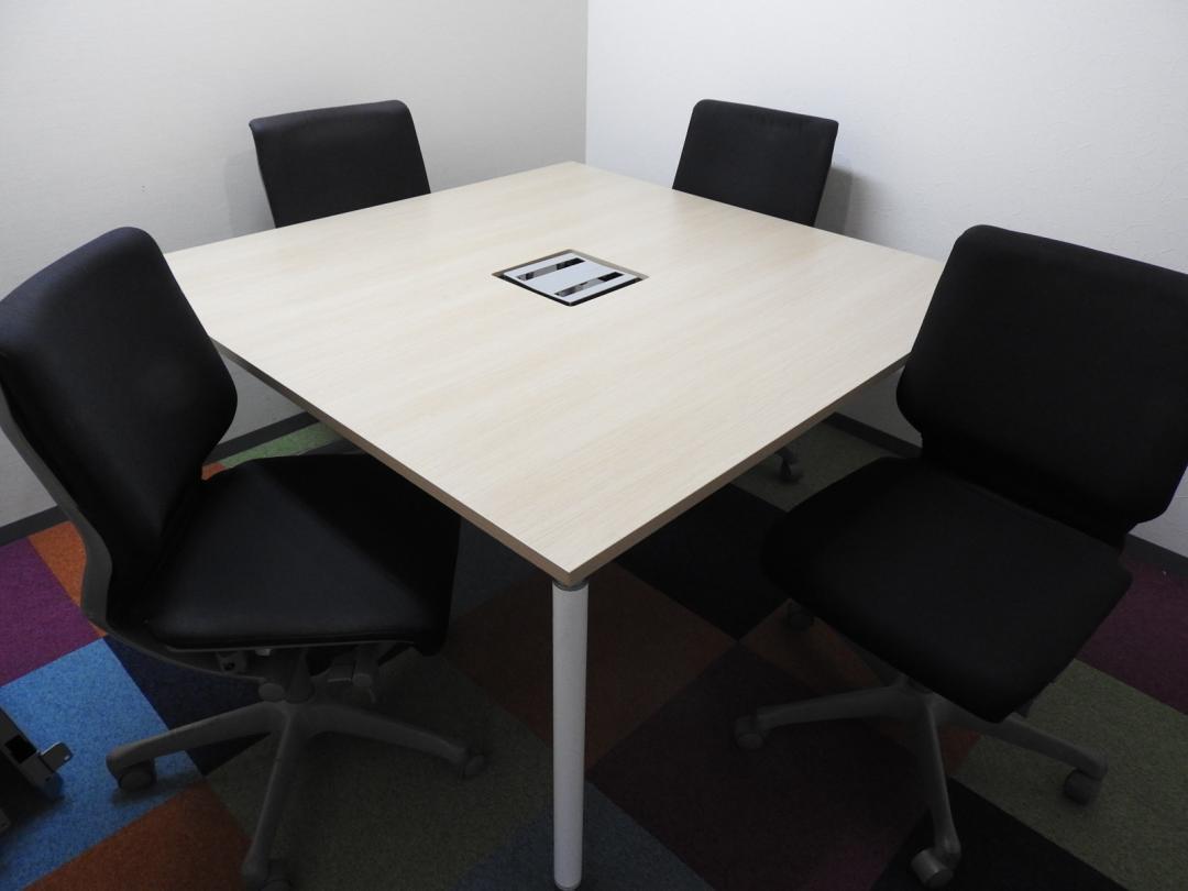 ミーティングデスクと座り心地良しのチェアのセット販売!【オカムラ製1400×1400ミーティングデスク】会議用スペースに最適です!【RP】- 品川・三田店