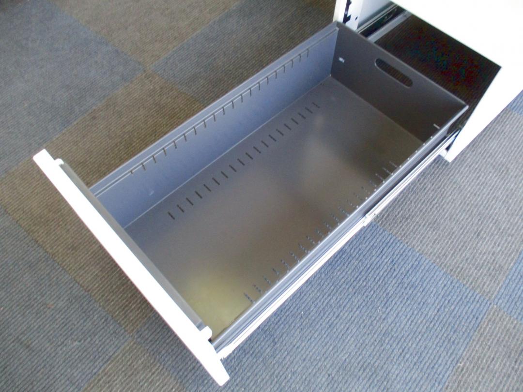- 地震時、センター引出しが飛び出さないよう、ラッチ機構を装備。脚はデスクの横ズレを軽減させる設計になっています。