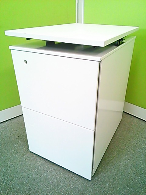 ワゴン天板の高さを調節してデスクの天板の高さに合わせることで、必要なときに作業スペースを拡張てぎるワゴンです。
