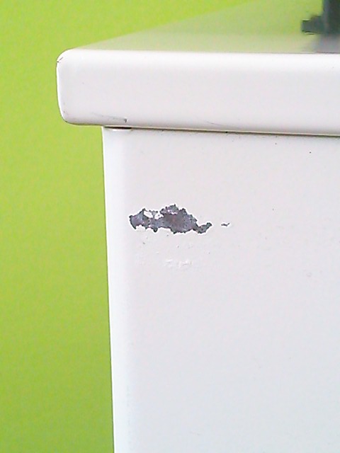 - かなり強い濃い黄ばみ・変色が商品全体にある。(例、天板、正面、背後、サイド部分にある。)