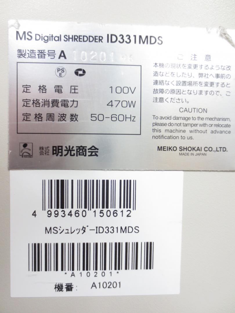 【中古】 MS-ID331MDS 明光商会 シュレッダー 184722
