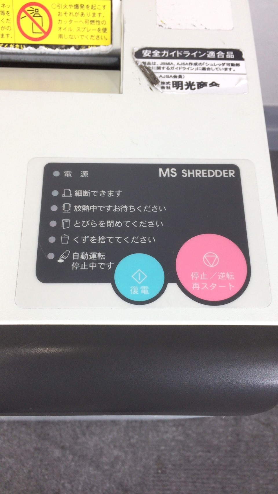 【KS】[ 2012年1月発売モデル][中古市場ではほぼ最新マシン]最大同時裁断枚数45枚のパワータイプ 業務用シュレッダー 明光商会製状態について