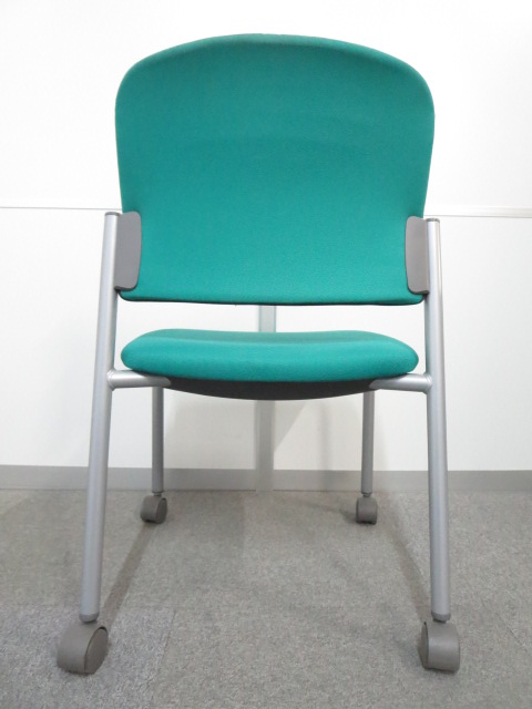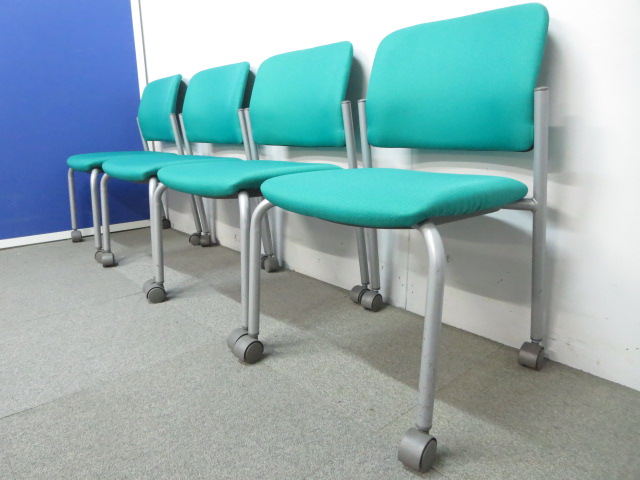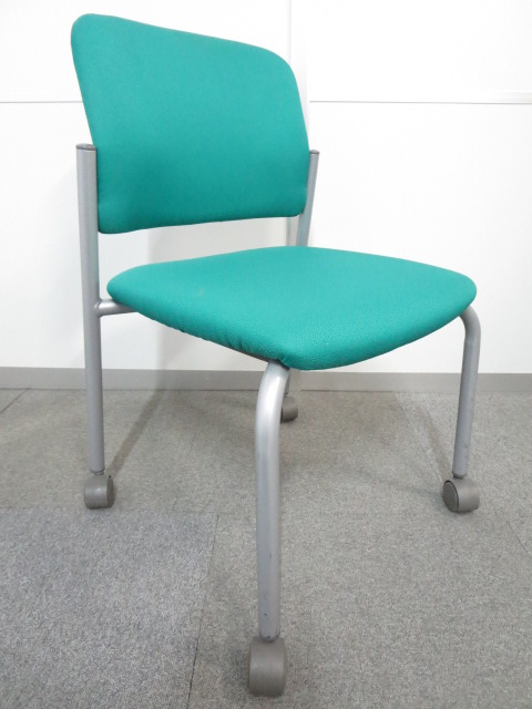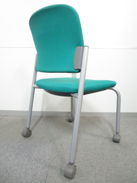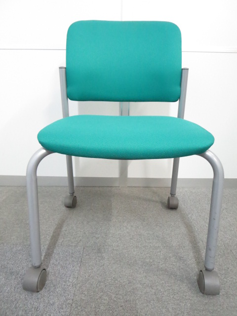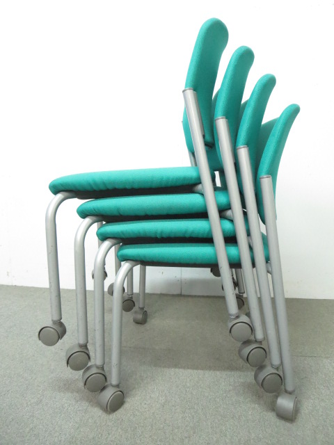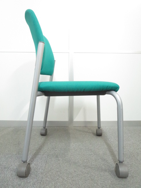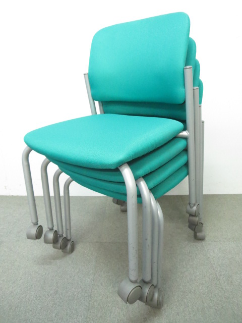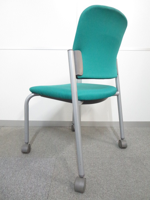 【状態良好!】■スタッキングチェア(キャスター付)■グリーン(ミディアムミント)■コクヨ製(KOKUYO)■会議・商談・打合せ用におすすめ!- 川崎店
