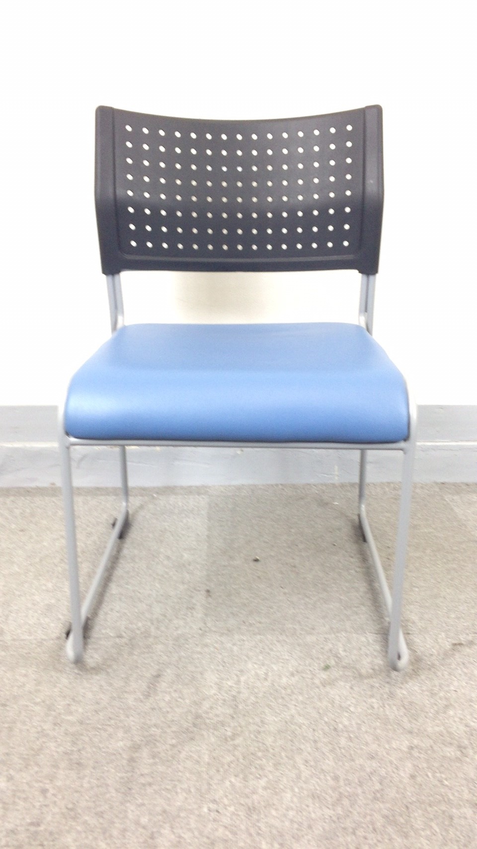 【KS】[簡易ミーティングチェア]上に重ねられて便利! スタッキングチェア 汚れに強いビニール生地座面- 茨城南店