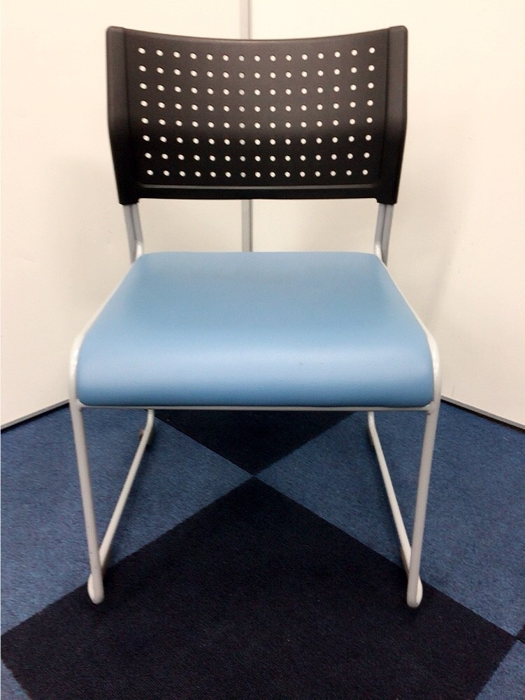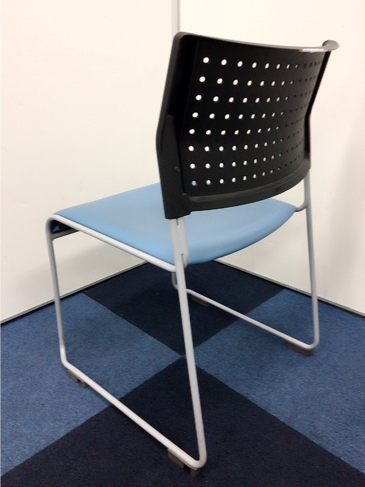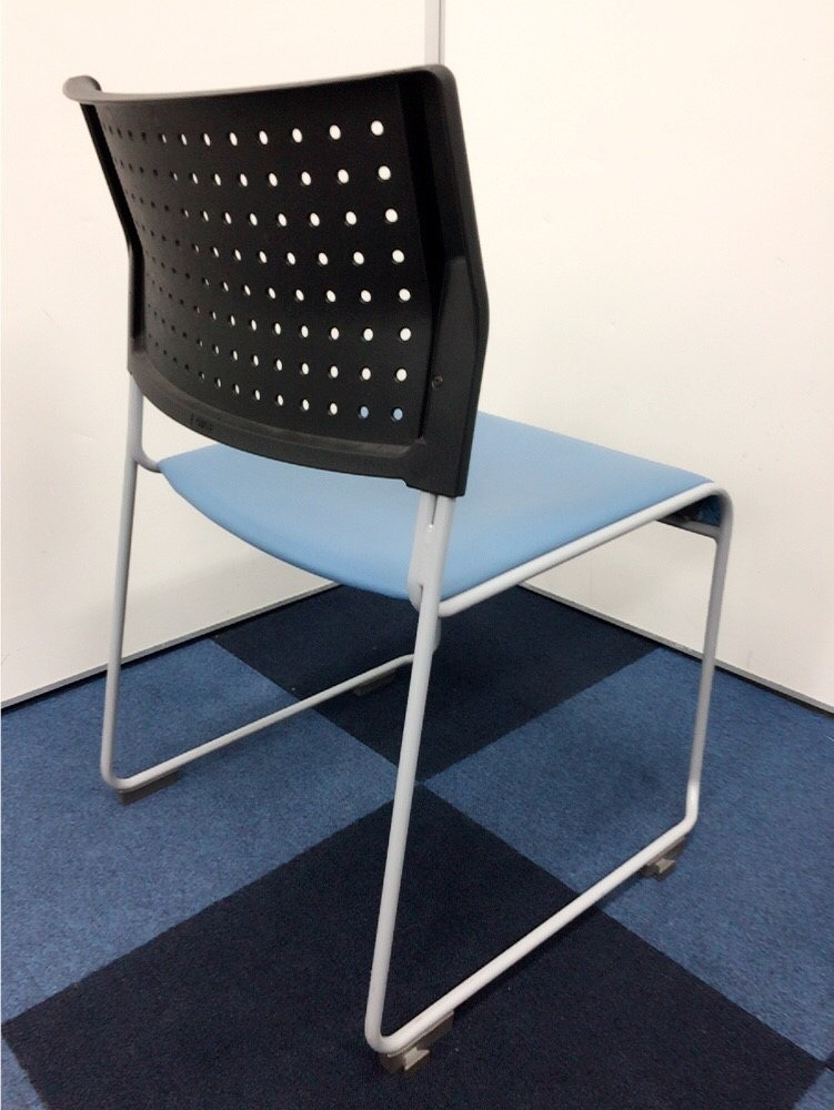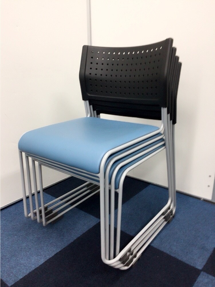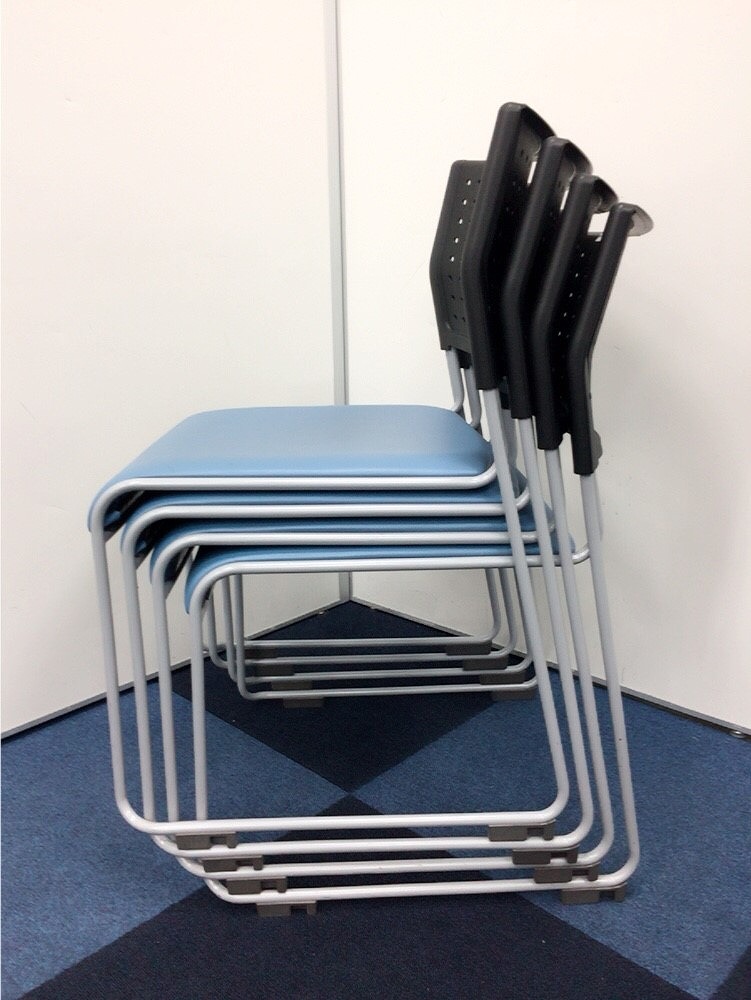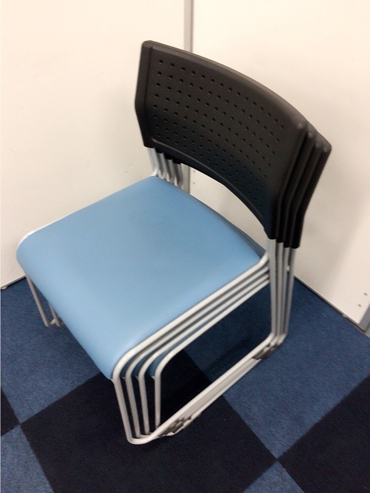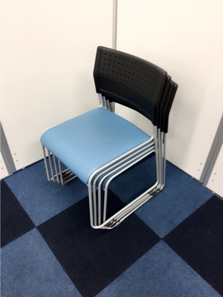 【スタッキングチェアセット】ミーティングテーブルに併せて使用して頂ければ簡易ミーティングスペースの完成!【人気のブルー色】- 在庫数